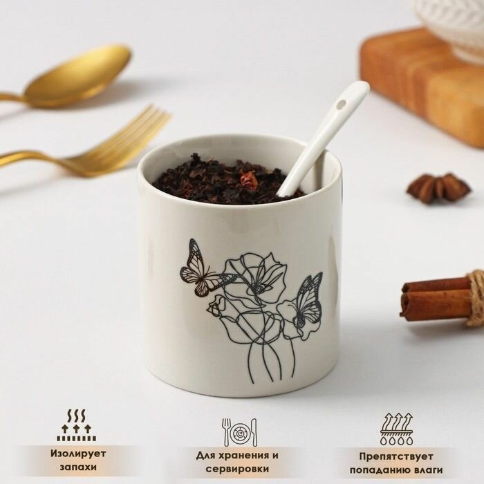 Банка фарфоровая для сыпучих продуктов с ложкой Эстет. Маки (2 шт) информация: