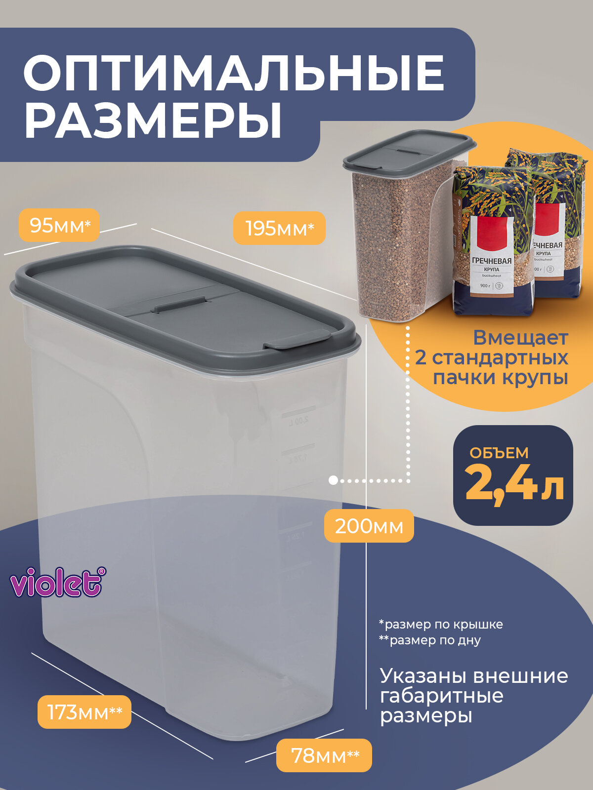 Отзывы на Банки для сыпучих продуктов 2,4л -6 шт, цвет серый / набор контейнеров для хранения