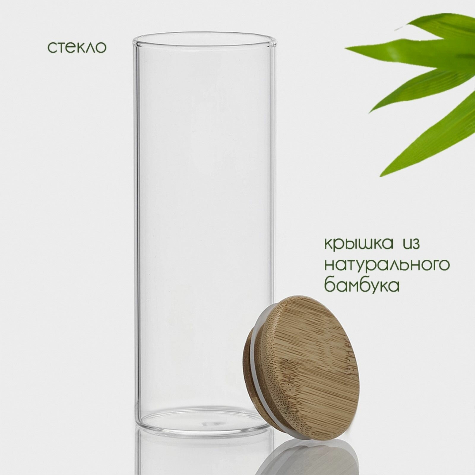 Банка для хранения "Эко", 550 мл, 8.5x12.5 см, с бамбуковой крышкой, стекло 497 ₽