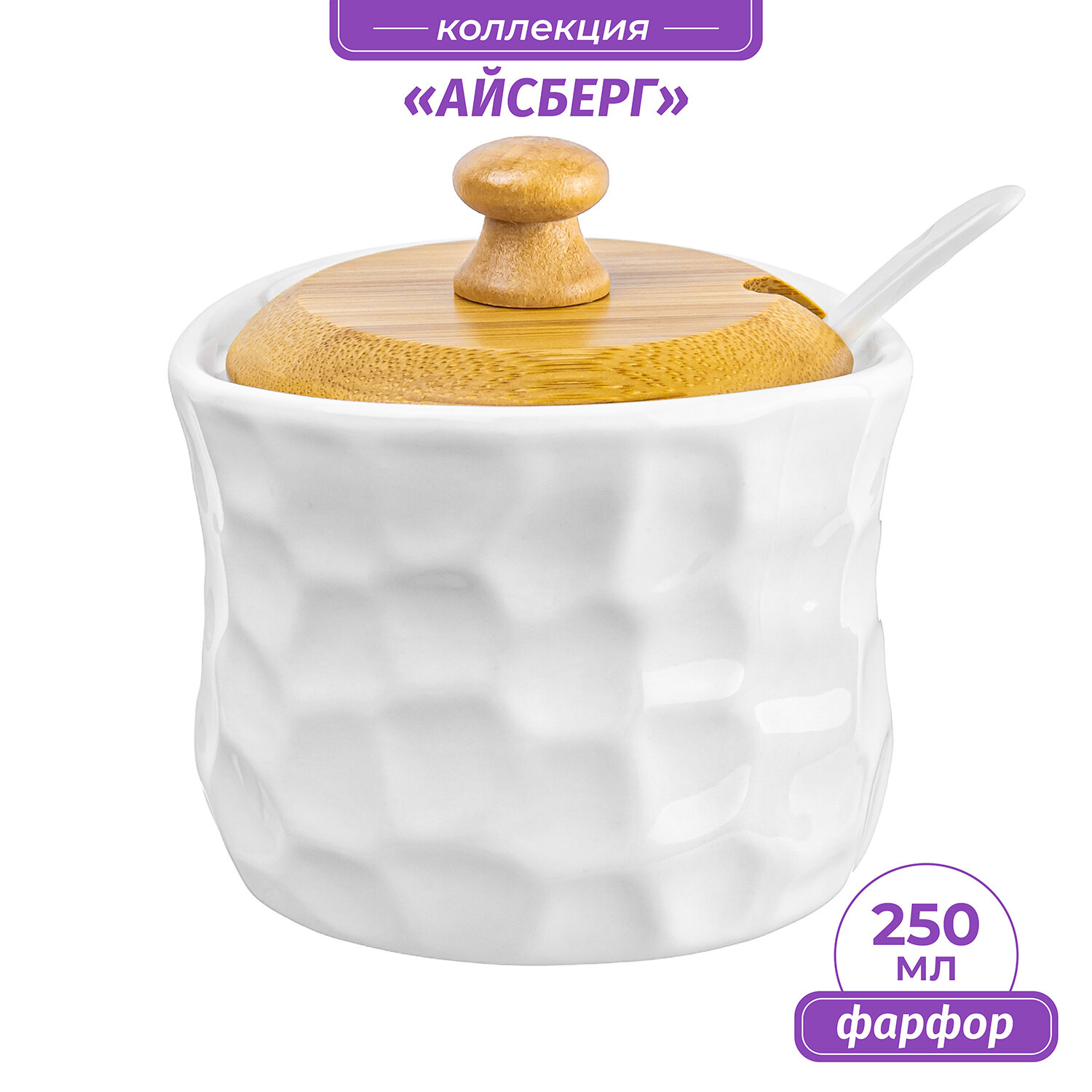 10 цен на Банка для хранения сыпучих продуктов, соли, специй, чая 250 мл Elan Gallery Айсберг + ложка + дерев. Крышка