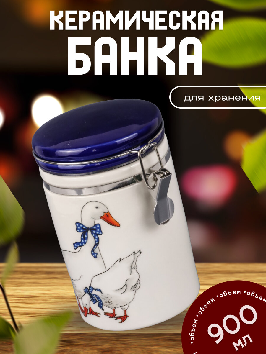 Отзывы на Банка для специй "ГУСИ" 900 мл с клипсой емкость для сыпучих продуктов в подарочной упаковке