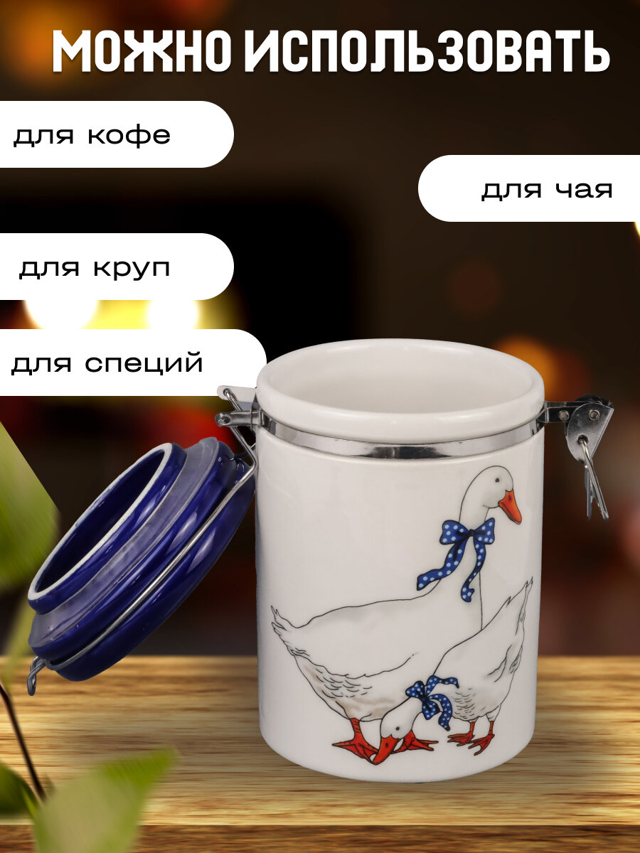 10 цен на Банка для специй "ГУСИ" 900 мл с клипсой емкость для сыпучих продуктов в подарочной упаковке