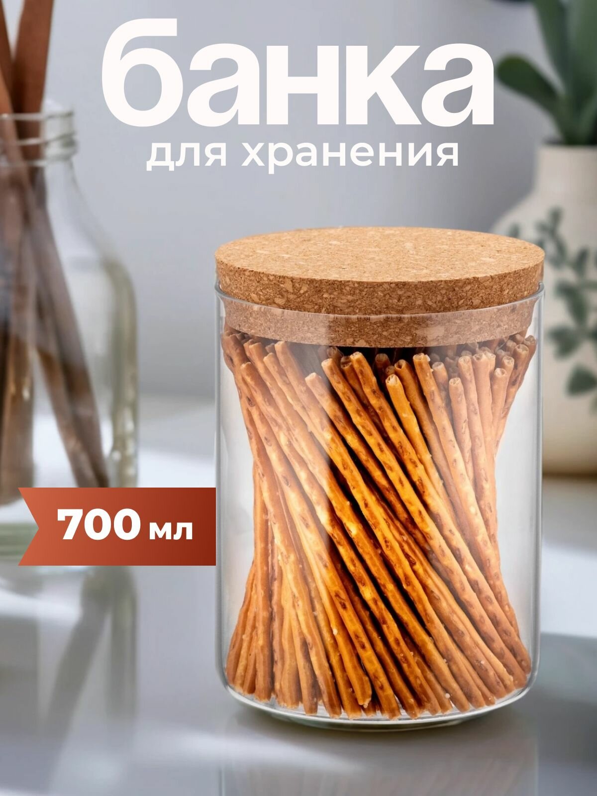 Банка для хранения сыпучих продуктов 700 мл, стеклянная с пробковой крышкой информация: