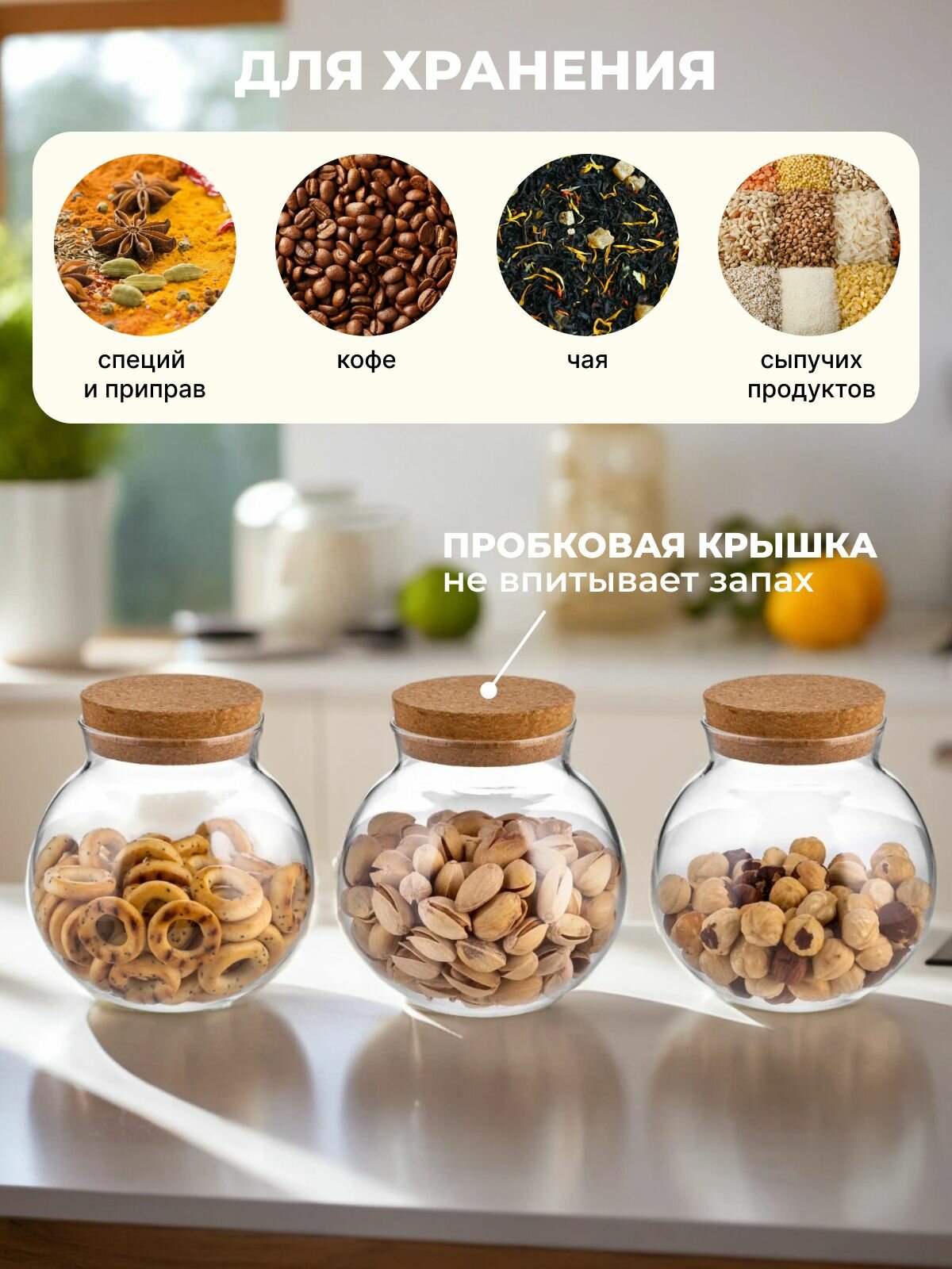 Банка для сыпучих продуктов с пробковой крышкой в виде шара, 900мл 693 ₽