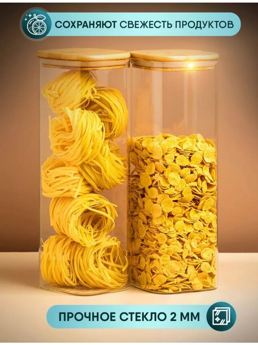 Стеклянные контейнеры для сыпучих продуктов "real ikea", бамбуковые крышки, 2 шт, 1100мл 1 450 ₽