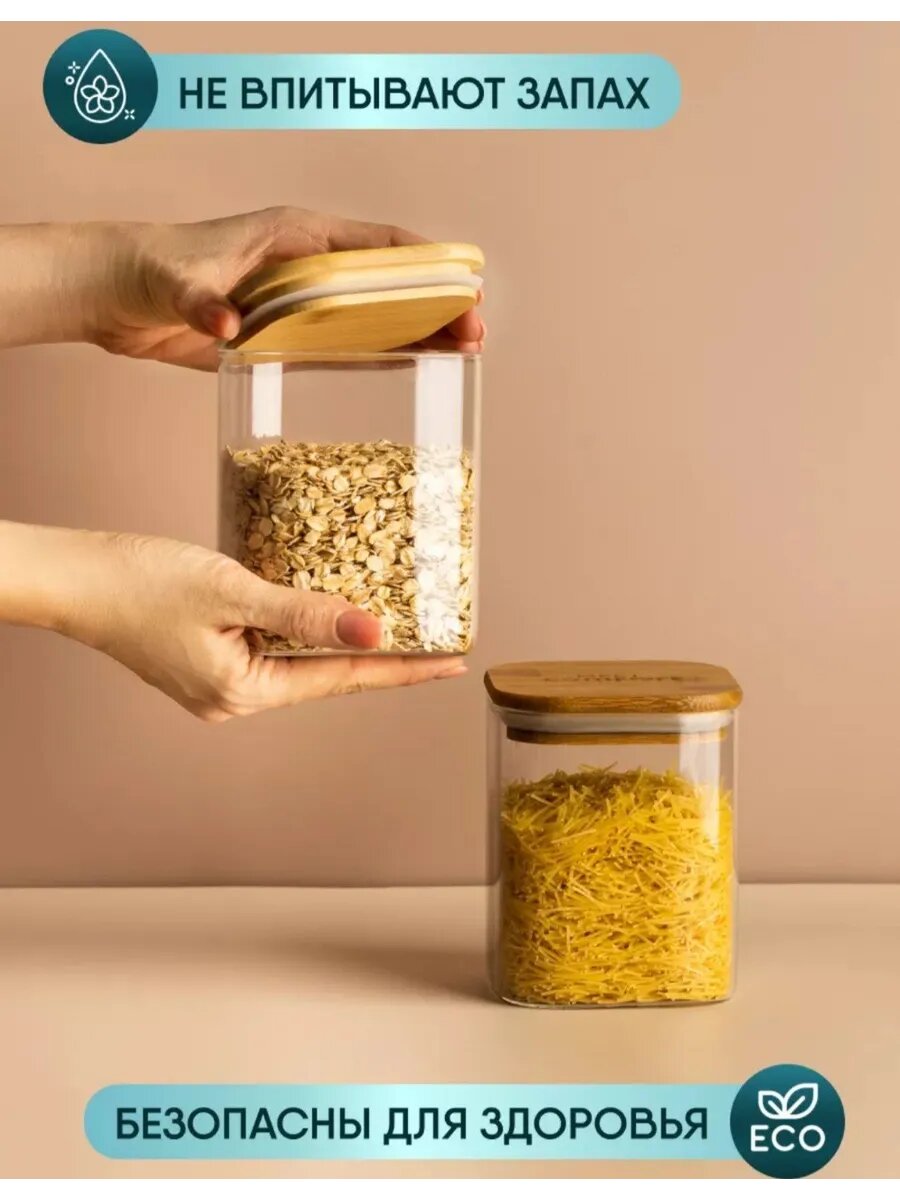 Отзывы на Набор стеклянных контейнеров, для сыпучих продуктов и чая, 1000мл, 2шт
