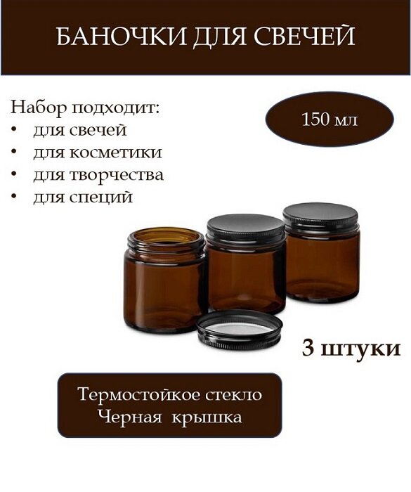 Банки для хранения сыпучих продуктов 150 мл стеклянные, 3 штуки информация: