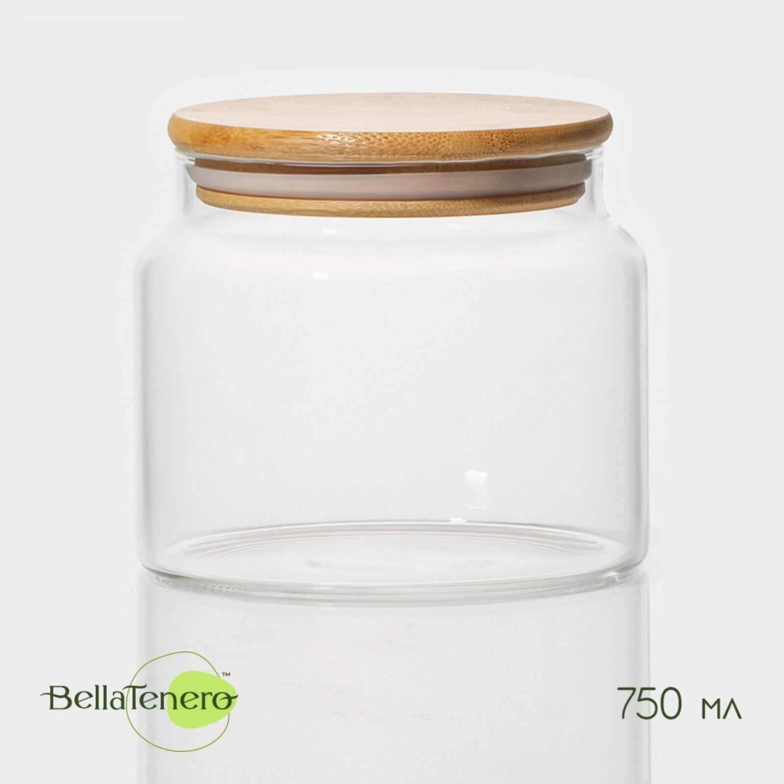 Банка стеклянная для сыпучих продуктов с бамбуковой крышкой BellaTenero "Эко", 750 мл, 12х10,5 см информация:
