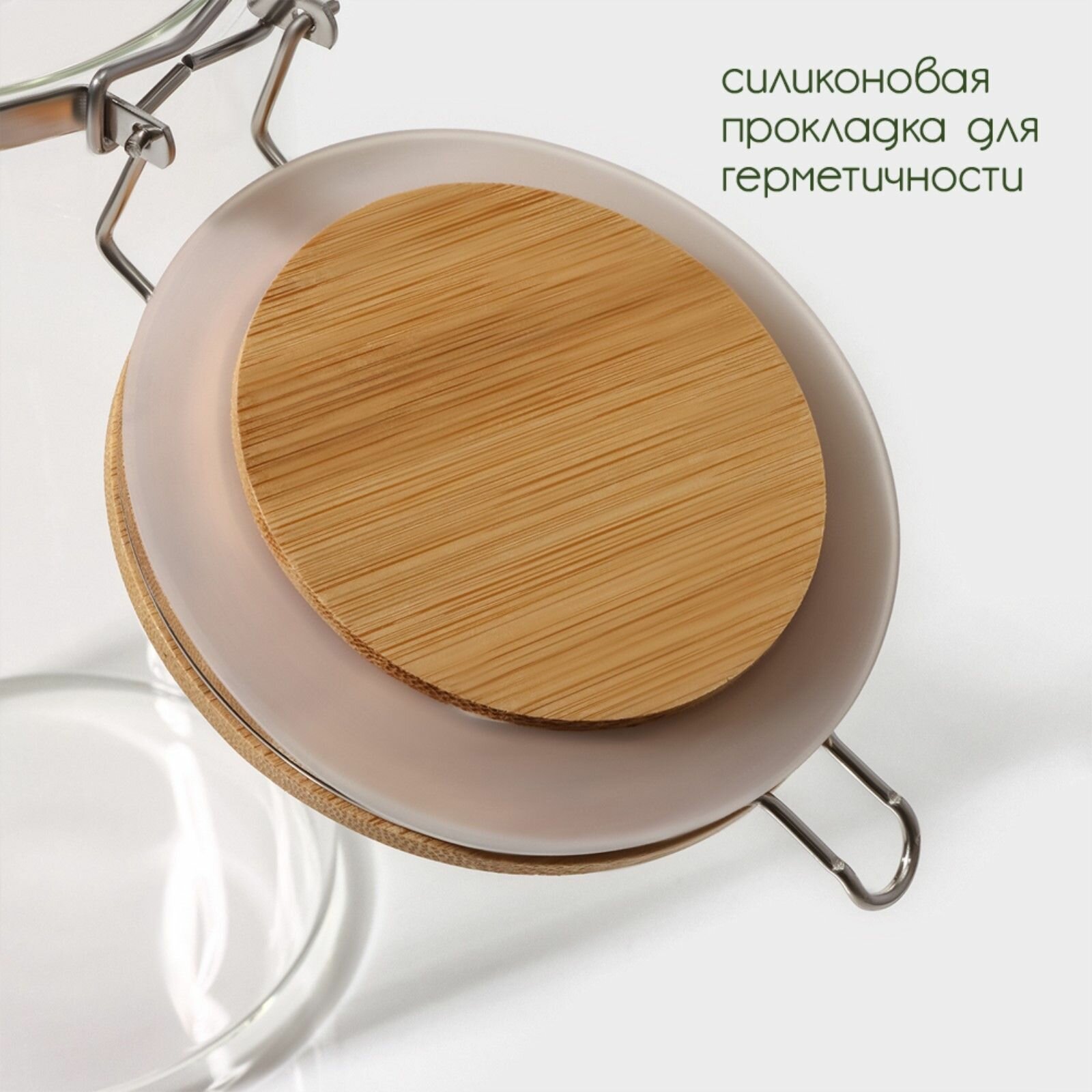 Банка стеклянная для сыпучих продуктов с бамбуковой крышкой Magistro "Эко", 1 л, 9,5х18 см 669 ₽