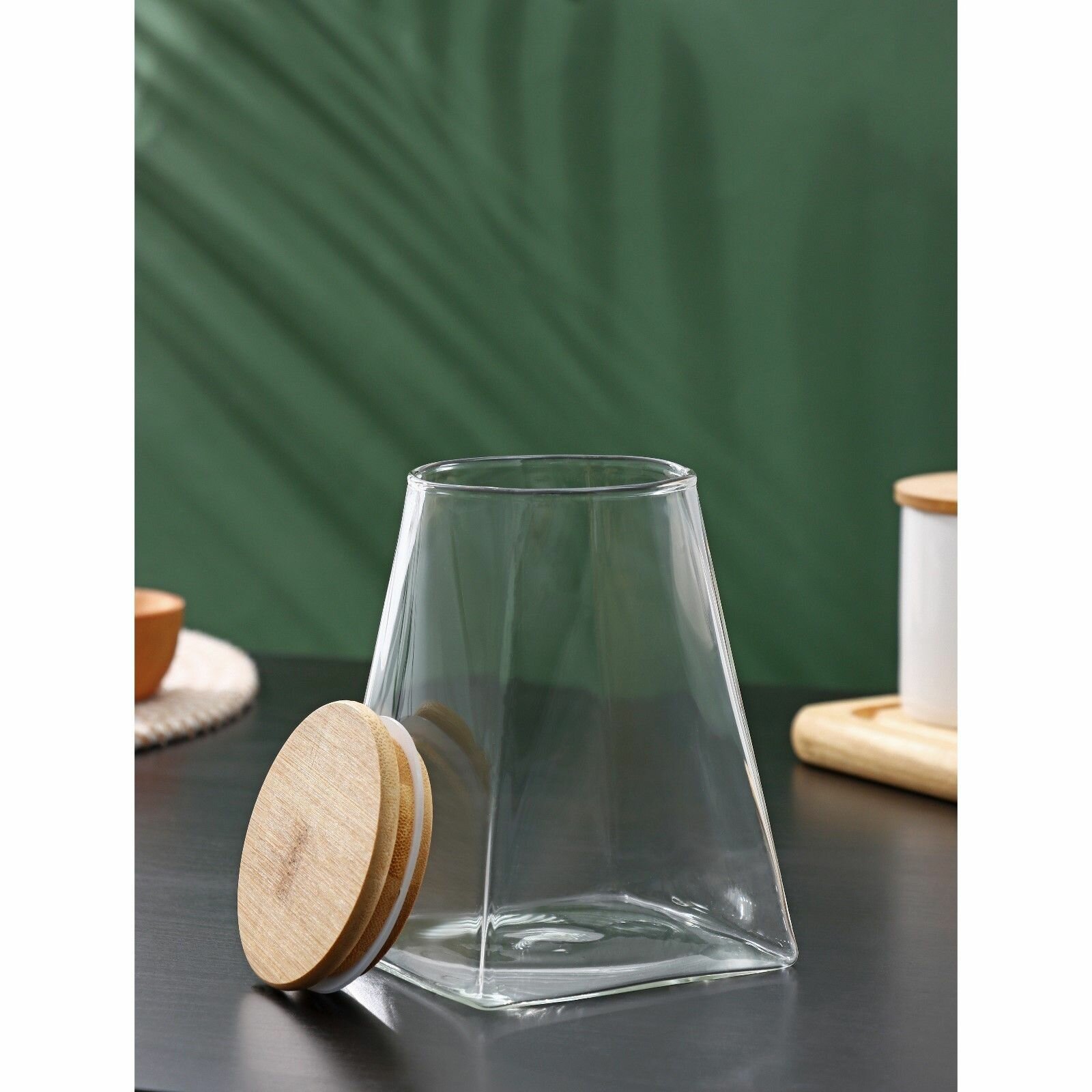 Отзывы на Банка стеклянная для сыпучих продуктов с бамбуковой крышкой "Эко. Трапеция", 900 мл, 10,5х14,5 см