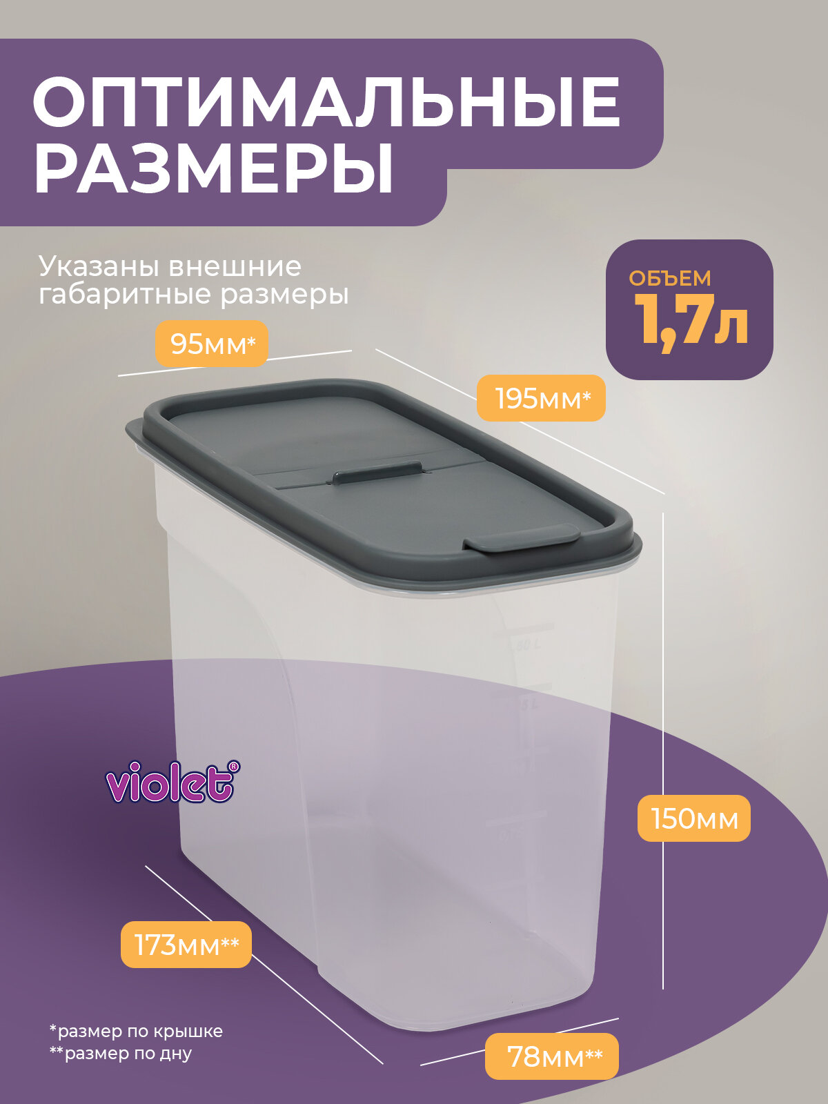 Отзывы на Банки для сыпучих продуктов 1,7л -6 шт, цвет серый / набор контейнеров для хранения