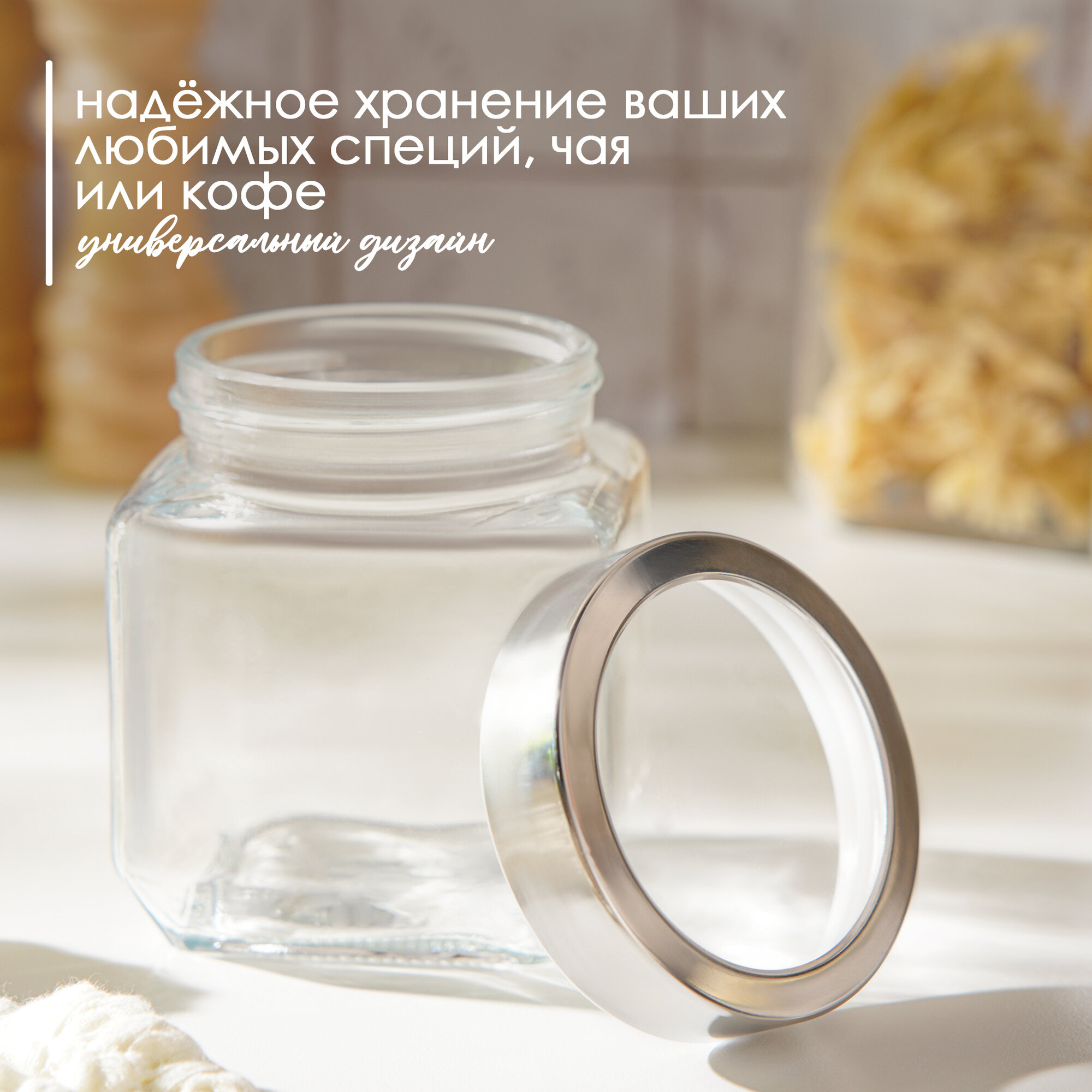 Банка для хранения сыпучих продуктов стеклянная с металлической крышкой Доляна «Премиум» 550мл 263 ₽