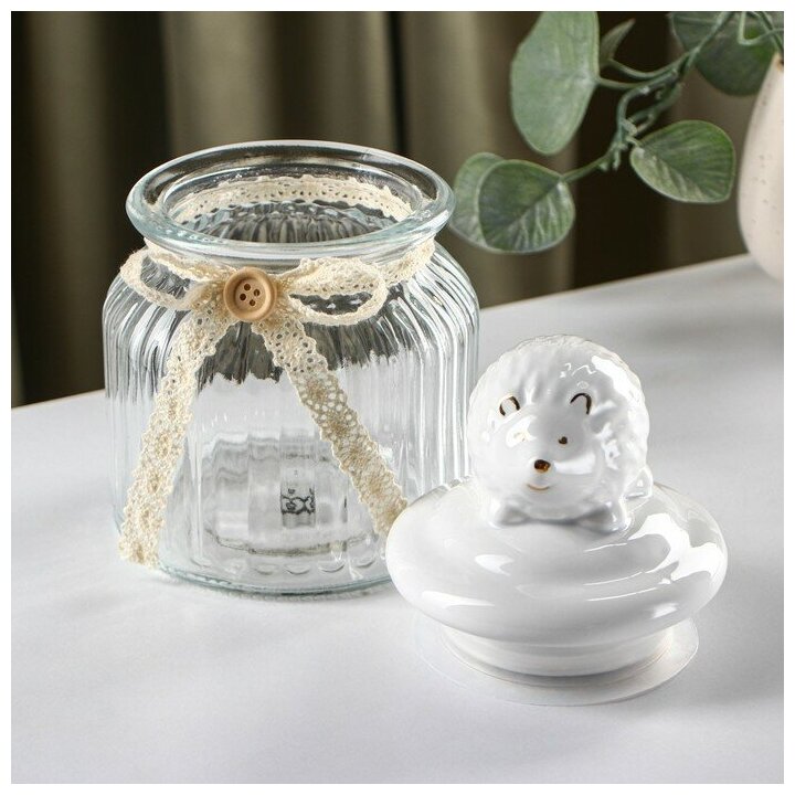 Отзывы на Банка стеклянная для сыпучих продуктов с керамической крышкой Доляна «Ёжик в золотом», 600 мл