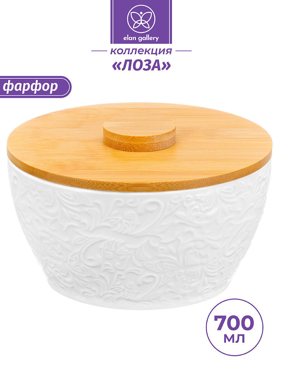 Банка для печенья/ для хранения сыпучих продуктов 700 мл Elan Gallery Лоза, с деревянной крышкой информация: