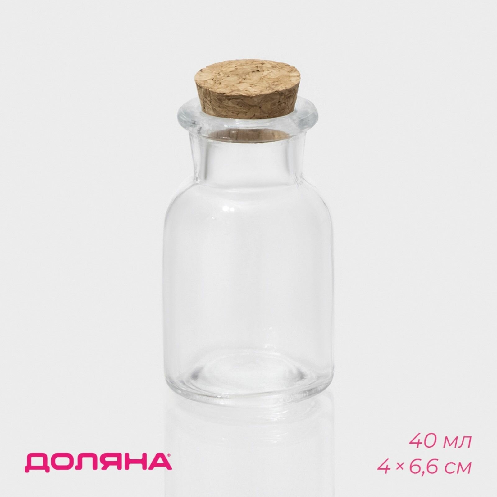 Баночка стеклянная для специй с пробковой крышкой Доляна "Парфе", 40 мл, 4х6,6 см информация:
