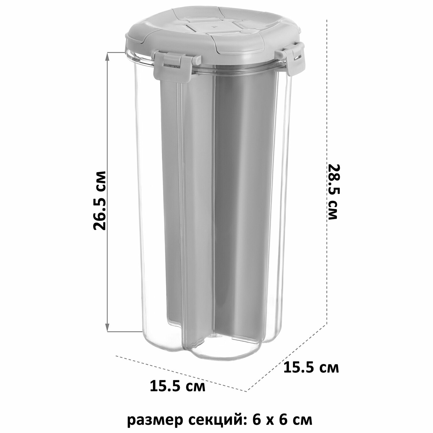 Банка для хранения сыпучих продуктов 15,5х15,5х28,5 см Elan Gallery, 4-х секционная, с крышкой информация: