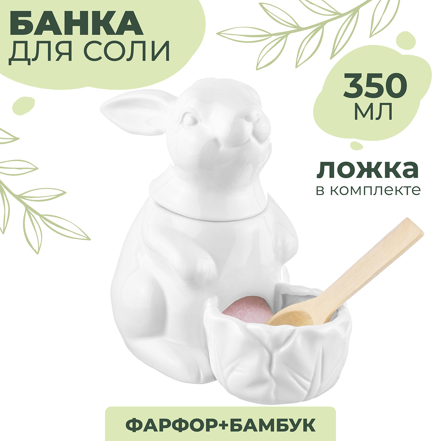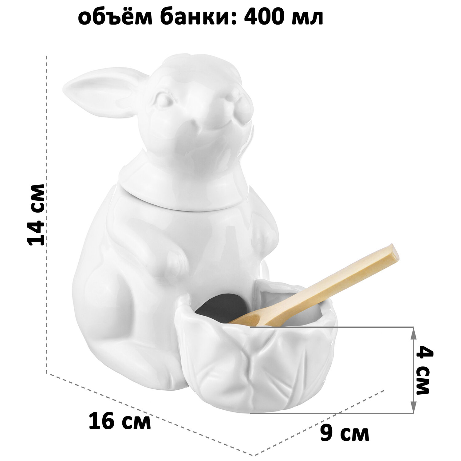 10 цен на Банка для хранения сыпучих продуктов, соли, сахара 400 мл Elan Gallery "Заяц" 16*9*14 см + дерев. ложка