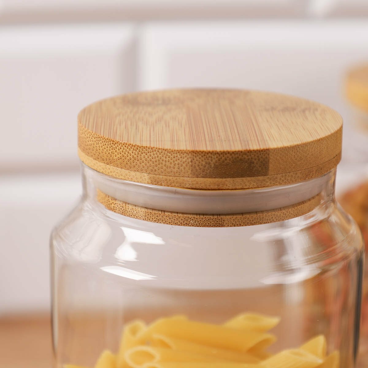 Отзывы на Банка-органайзер для хранения сыпучих продуктов 1100 мл стекло, с бамбуковой крышкой