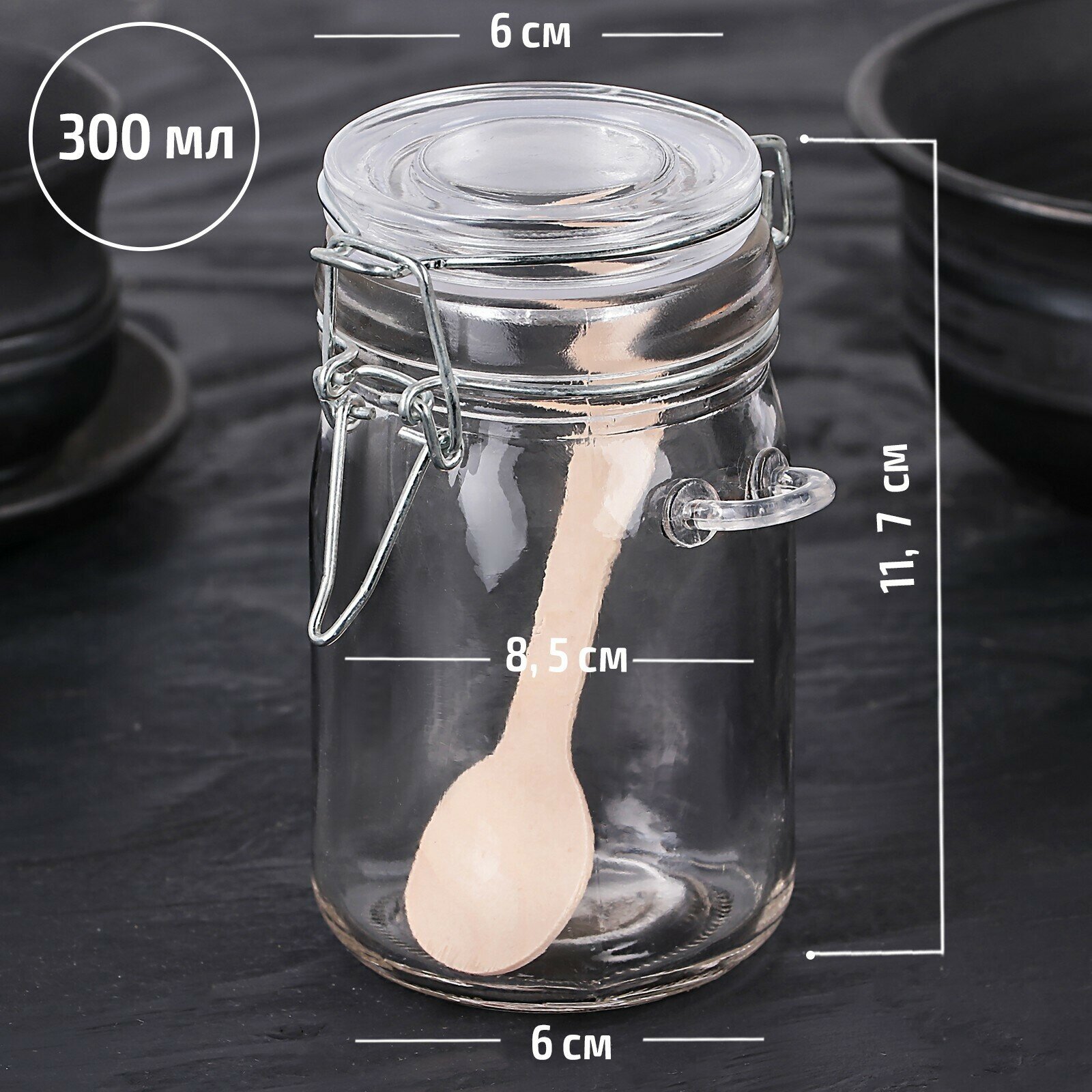 Банка для сыпучих продуктов "Оптима", 300 мл, 8,5*6,5*11 см, с бугельным замком и ложкой информация: