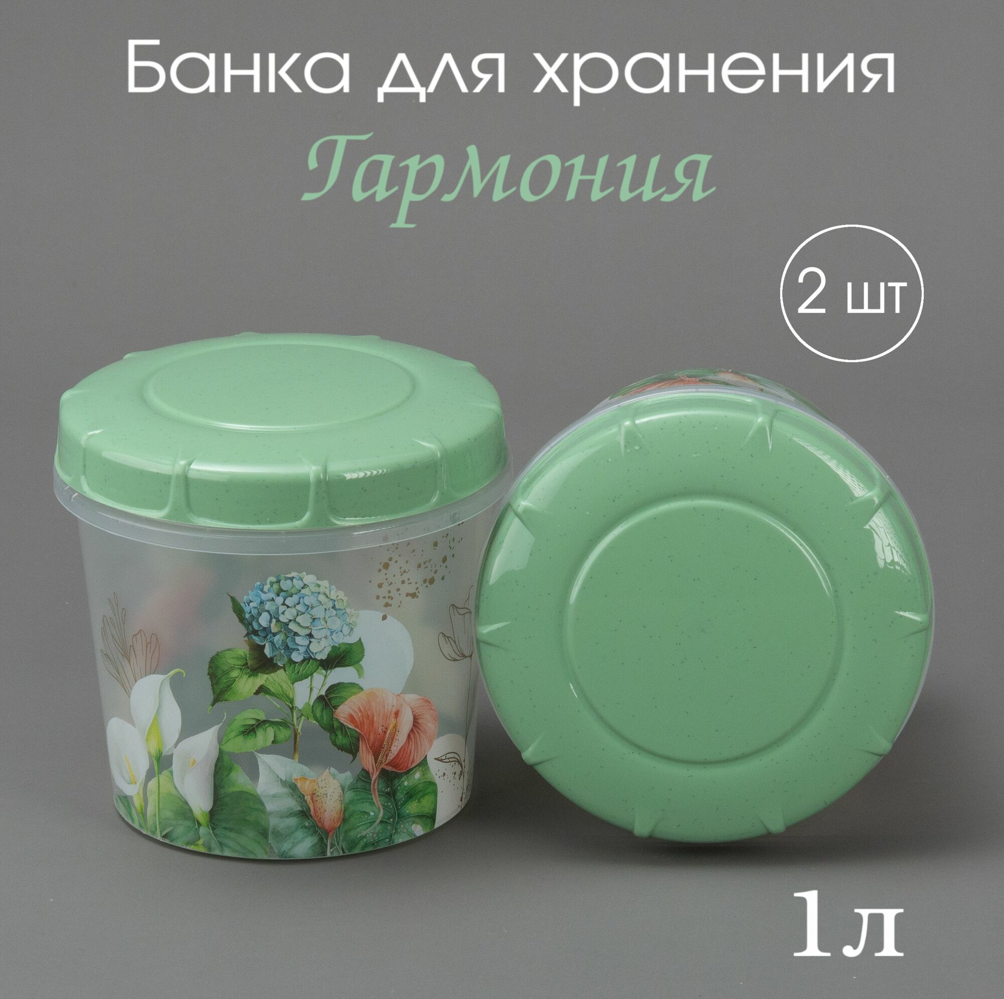 Банка для хранения продуктов 1 л Гармония, комплект 2 шт, контейнер для хранения 1000мл информация: