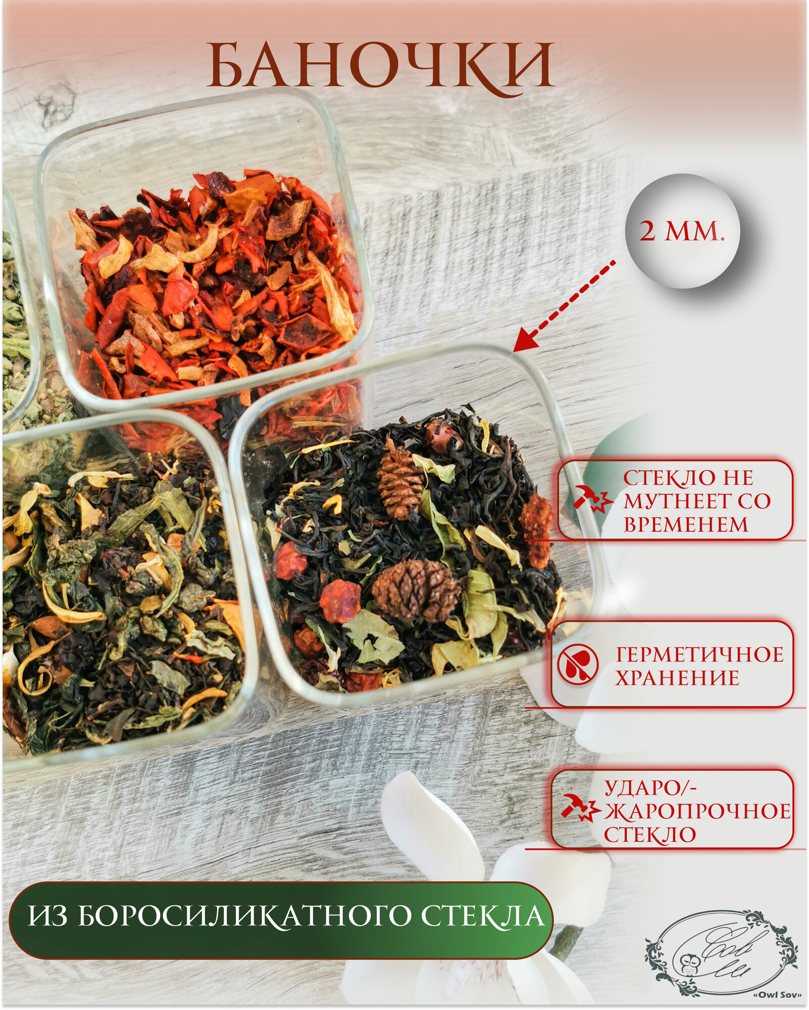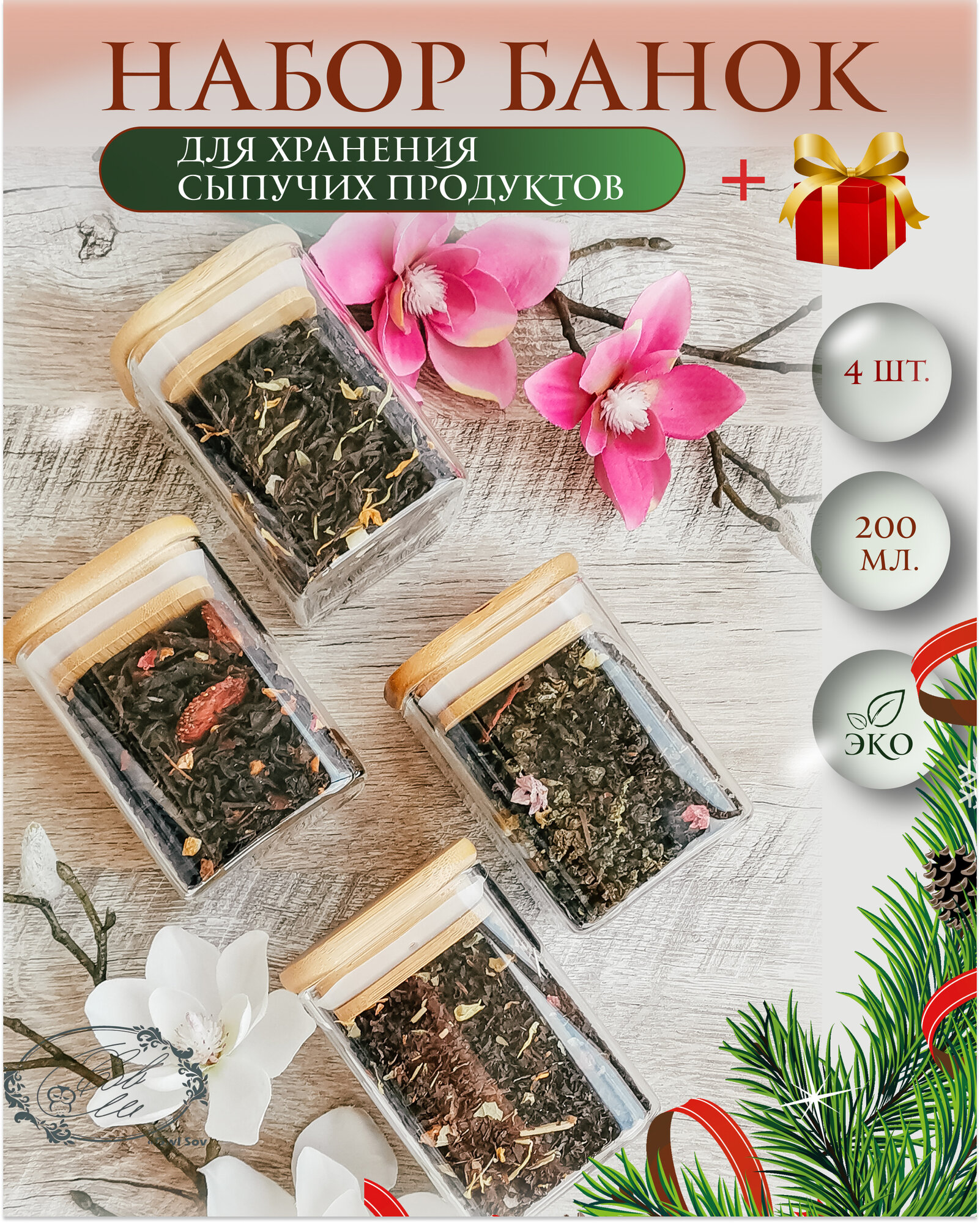 Набор баночек для сыпучих продуктов "Owl Sov", 4 штуки, 200мл, хранение на кухне, банка квадратная для чая информация: