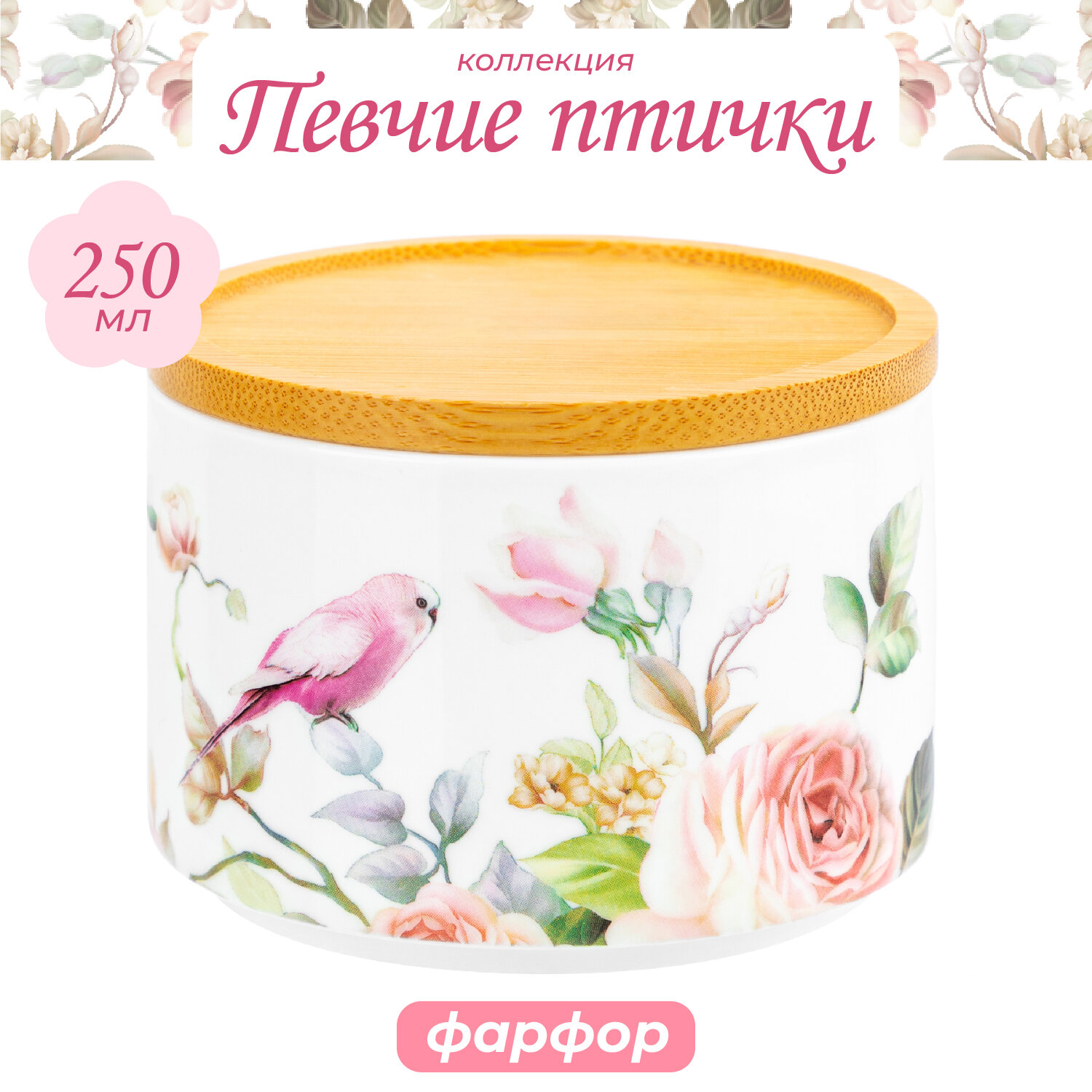 Банка для хранения сыпучих продуктов, специй 250 мл Elan Gallery Певчие птички, с деревянной крышкой-подставкой информация:
