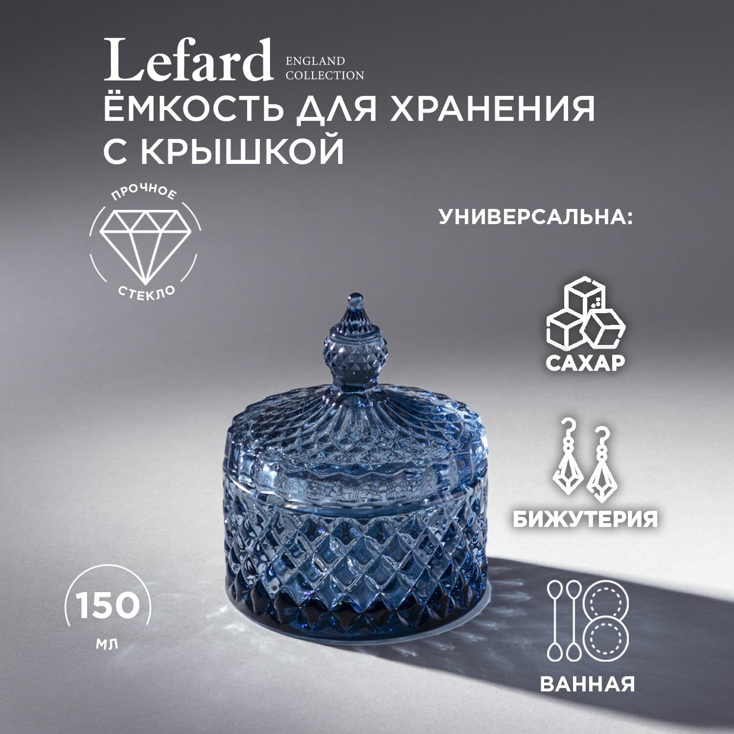 Отзывы на Емкость Lefard из стекла для хранения стеклянная "Diamant Blue" 8,5 х 8,5 х 10 см