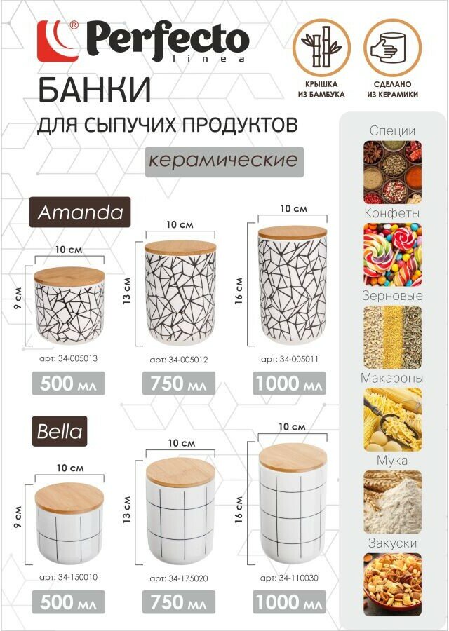 Банка керамическая для сыпучих продуктов PERFECTO LINEA Bella 0,75 л (34-175020) информация: