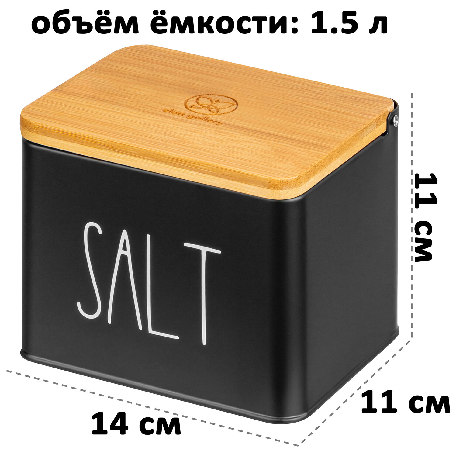 Банка для хранения сыпучих продуктов соли/ кофе / чая / сахара 1,5 л Elan Gallery "Соль", черная с деревянной крышкой информация: