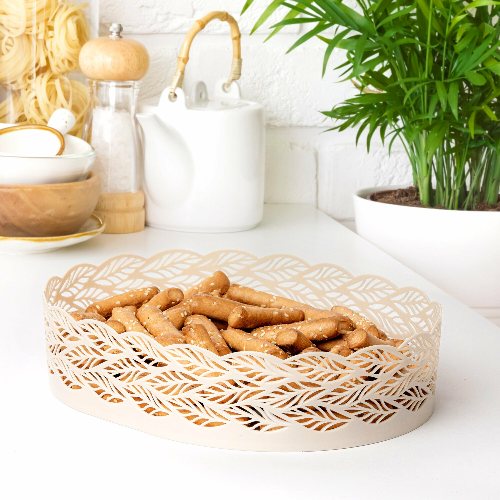 10 цен на Сухарница Альтернатива Эдем, овальная, размер: 25.5x19.5x6см, цвет: бежевый