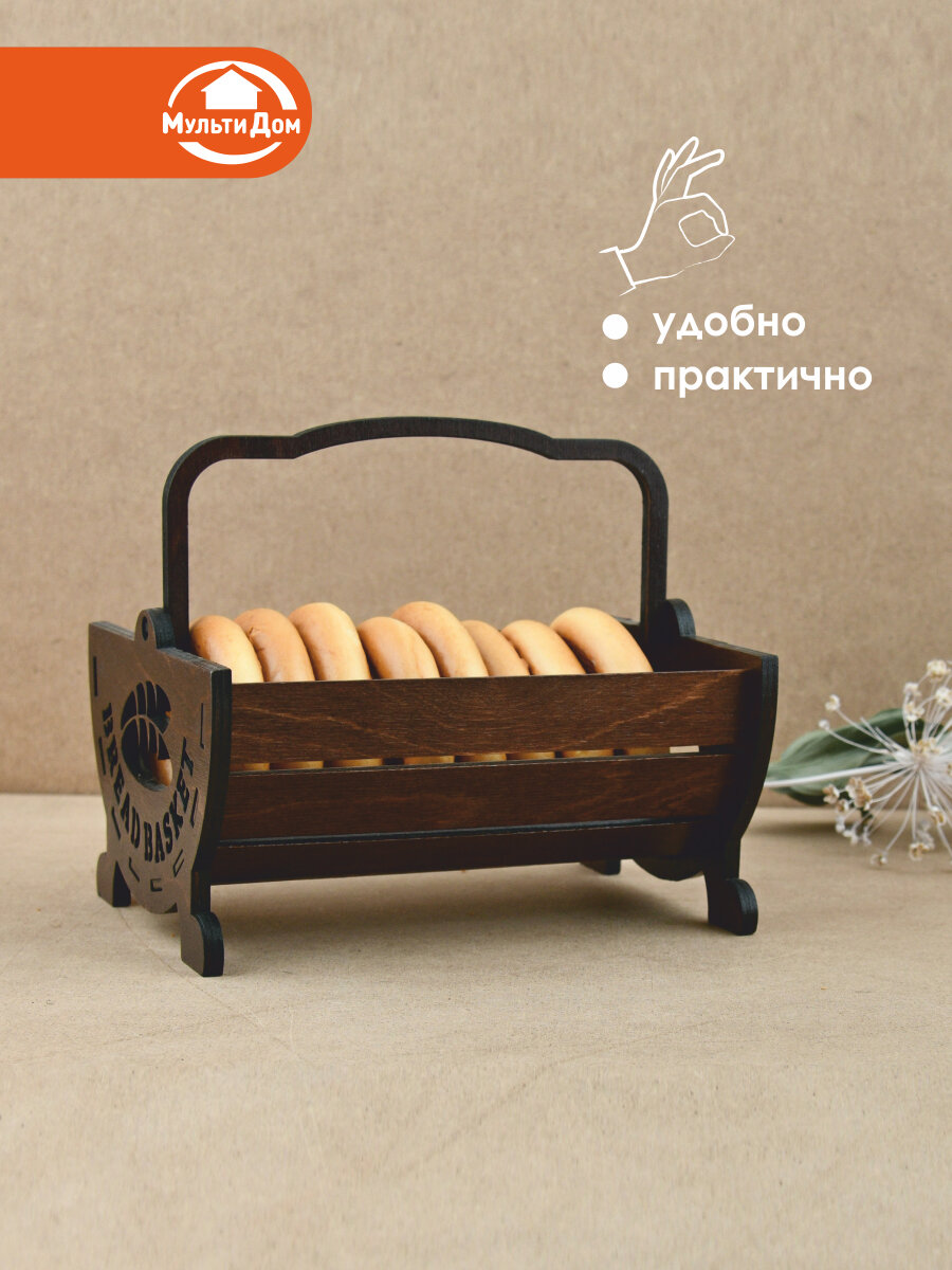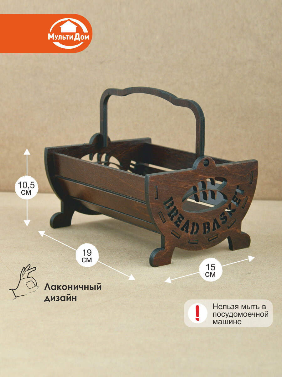 Корзинка для хлеба, береза, коричневая, 10,5x19x15 см информация: