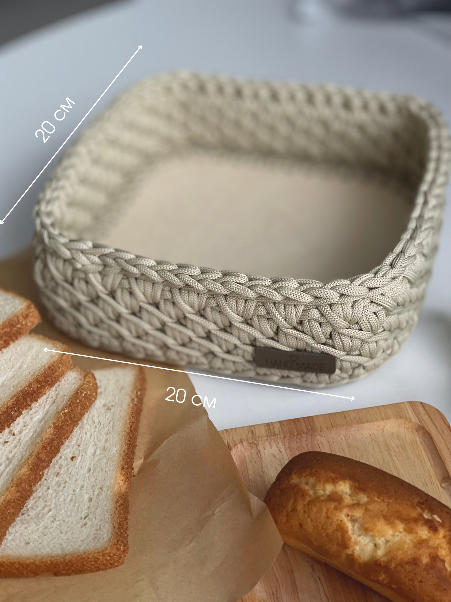 Вязаная корзина для хлеба ручной работы, цвет «Лён», 20х20 см информация: