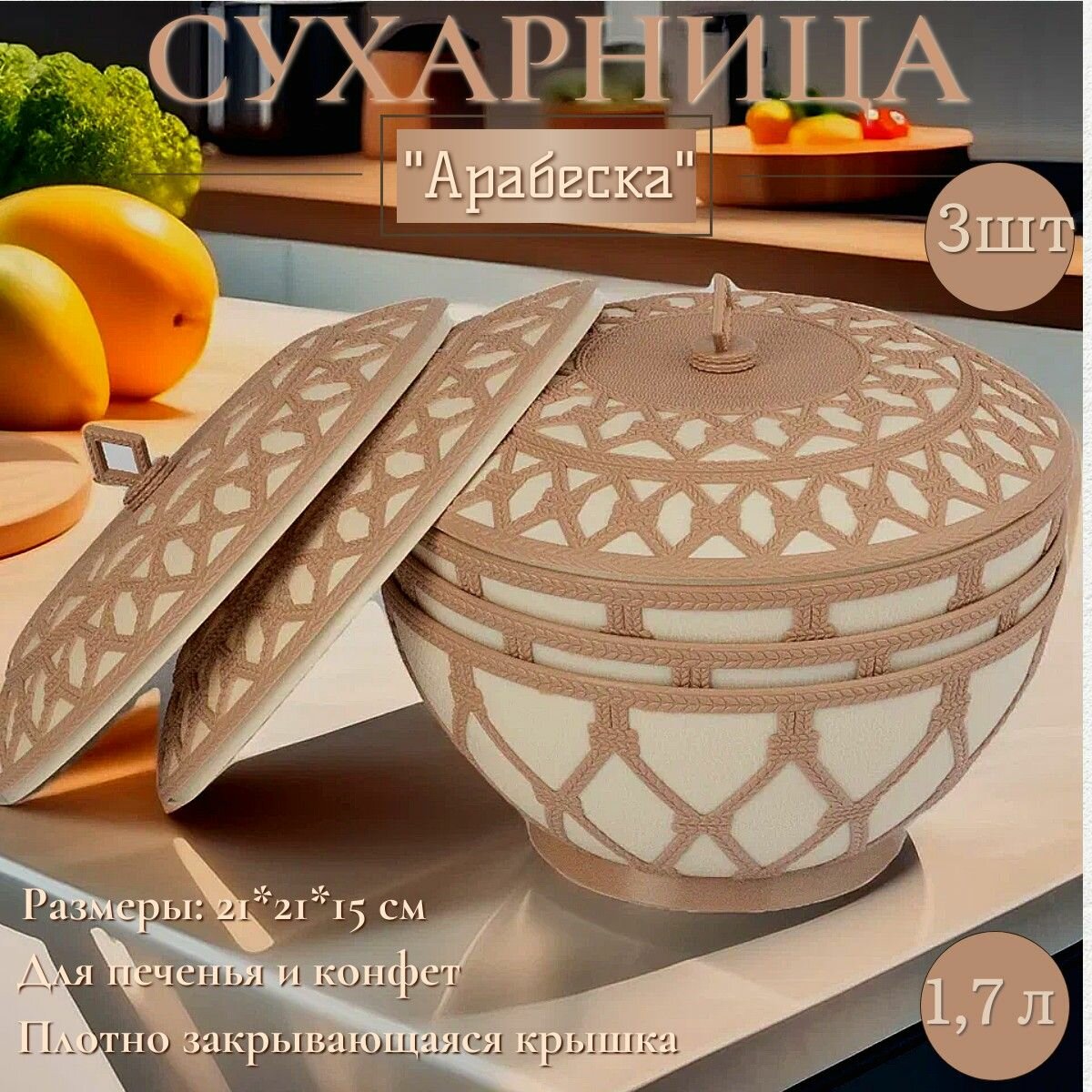 Отзывы на Сухарница"Арабеска" для печенья и конфет с крышкой комплект 3 шт/1,7 л