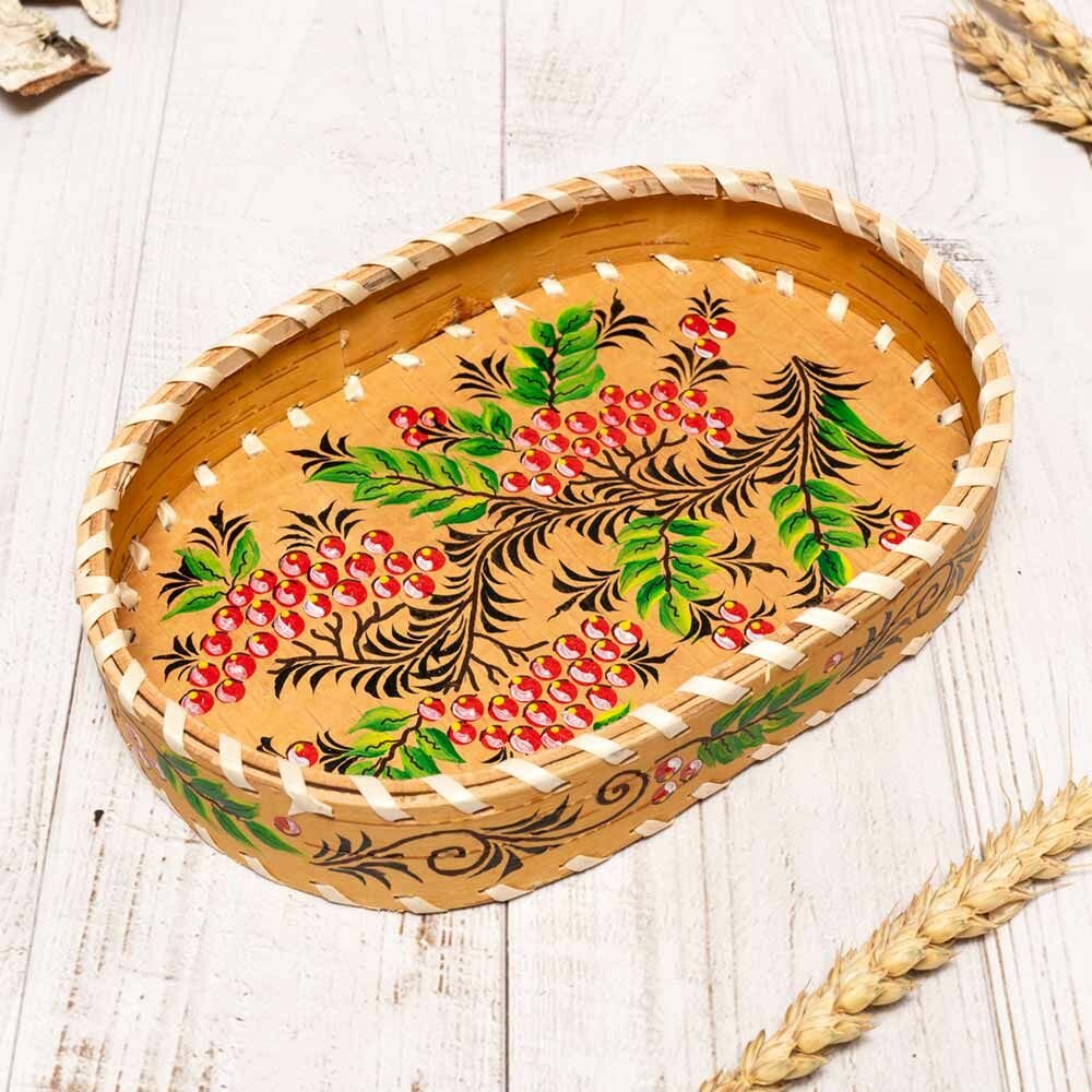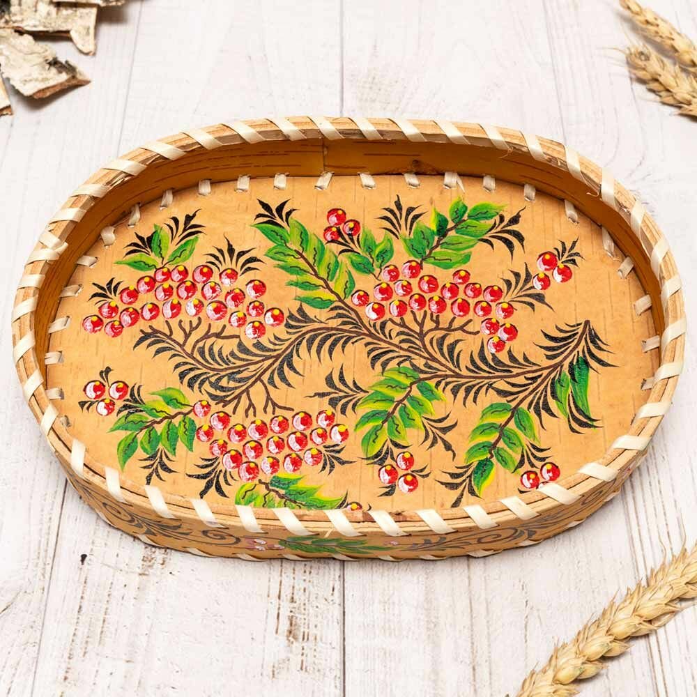 10 цен на Тарелка - Сухарница Рябина, роспись, береста, 22х14х3,5 см