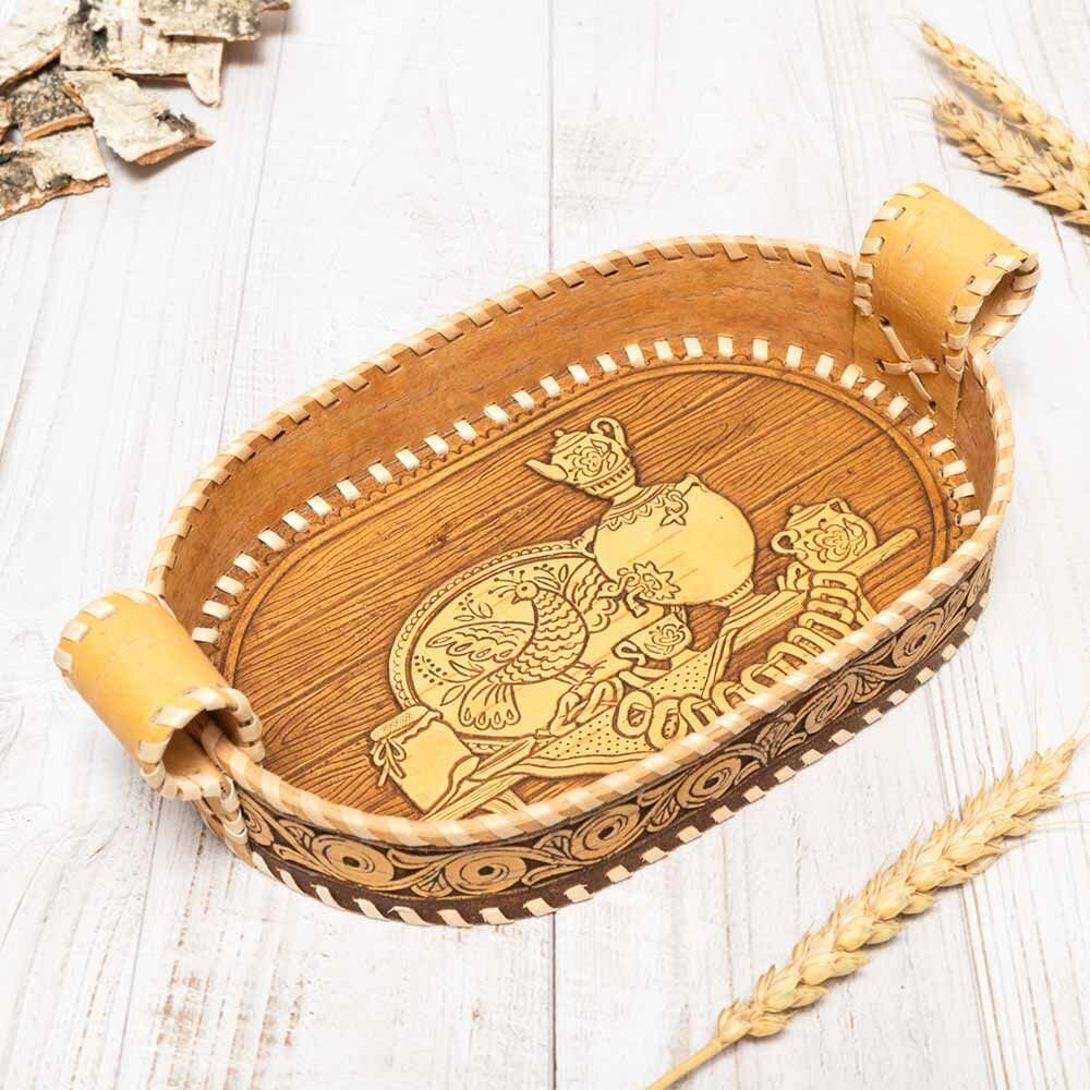 10 цен на Тарелка - Сухарница Чаепитие, овальная, береста, 26х15х6 см