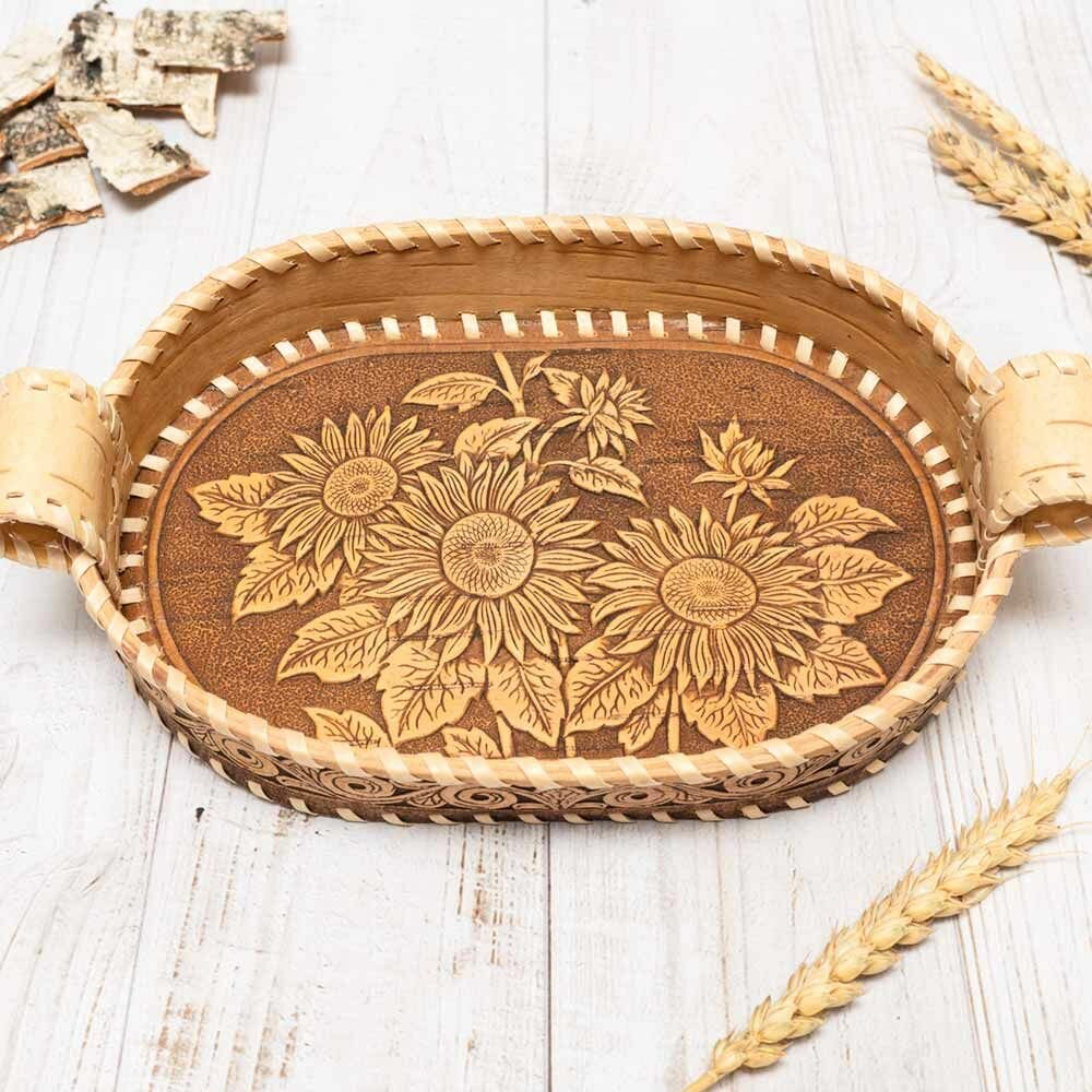 Тарелка - Сухарница Подсолнух, овальная, береста, 26х15х6 см информация: