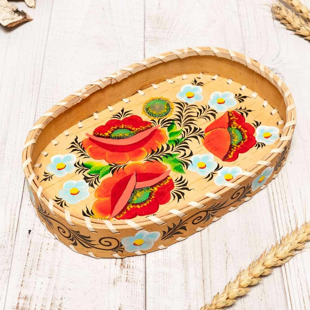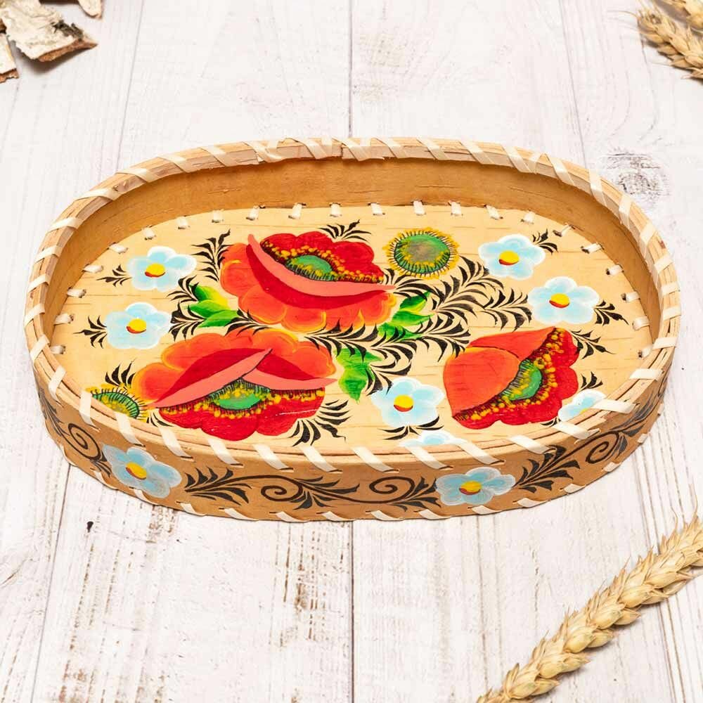 10 цен на Тарелка - Сухарница Цветы, роспись, береста, 22х15х3,5 см