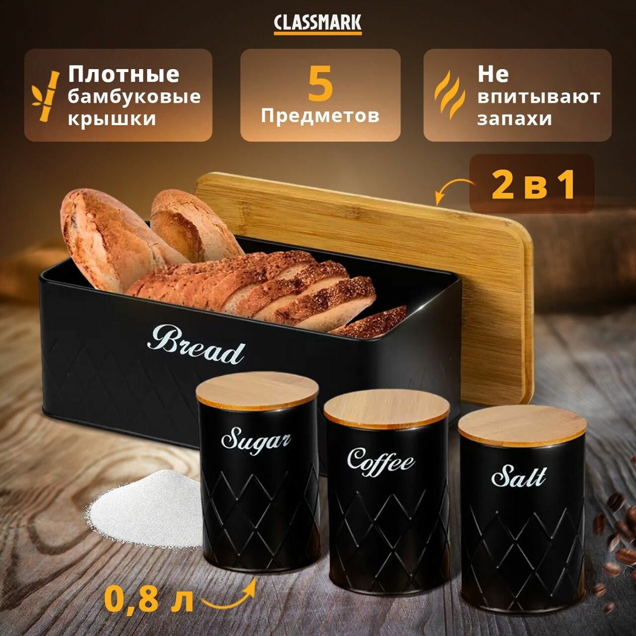 Хлебница из нержавеющей стали с бамбуковой крышкой доской и Набор банок для хранения сыпучих продуктов информация: