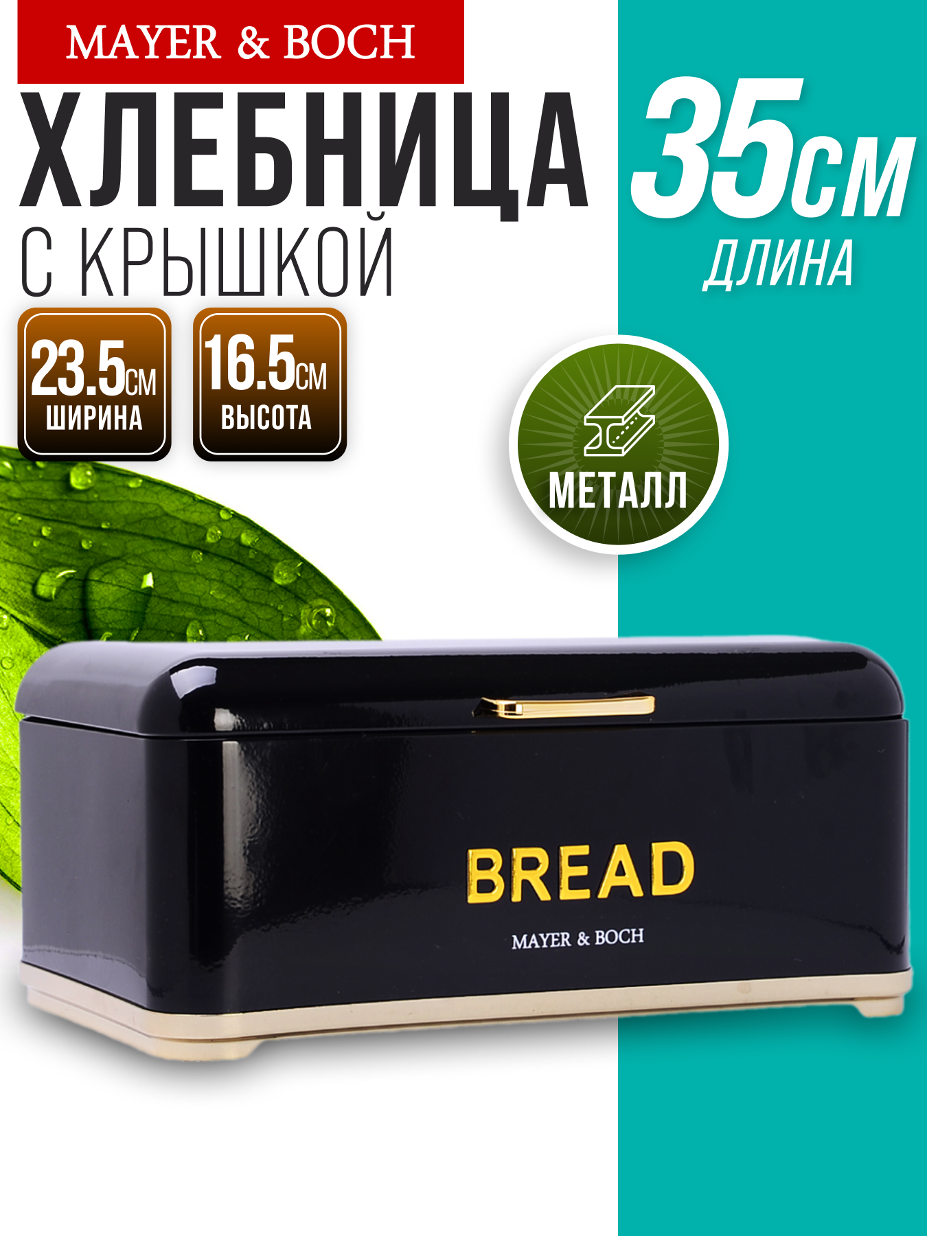 10 цен на Хлебница Mayer&Boch, с откидной крышкой, металл, черная/золотая