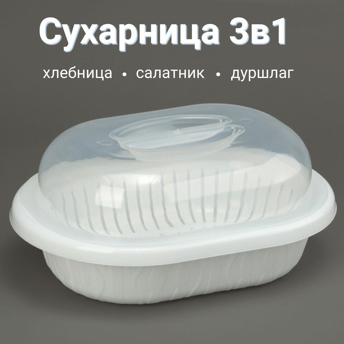 Хлебница с крышкой пластиковая 3в1 (хлебница, салатник, дуршлаг) информация: