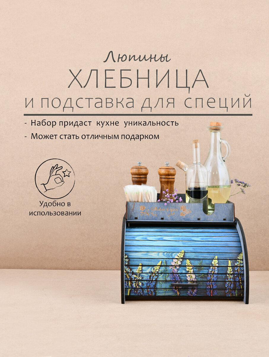 Хлебница деревянная с крышкой и подставка для специй набор 2 предмета информация: