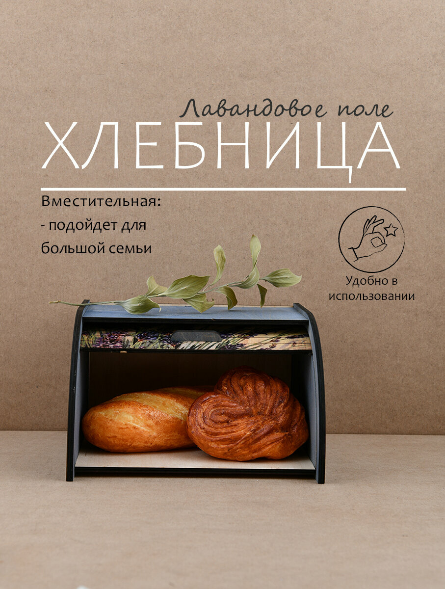 10 цен на Хлебница деревянная с крышкой "Лавандовое поле", 29,5х29,5х18,5 см.