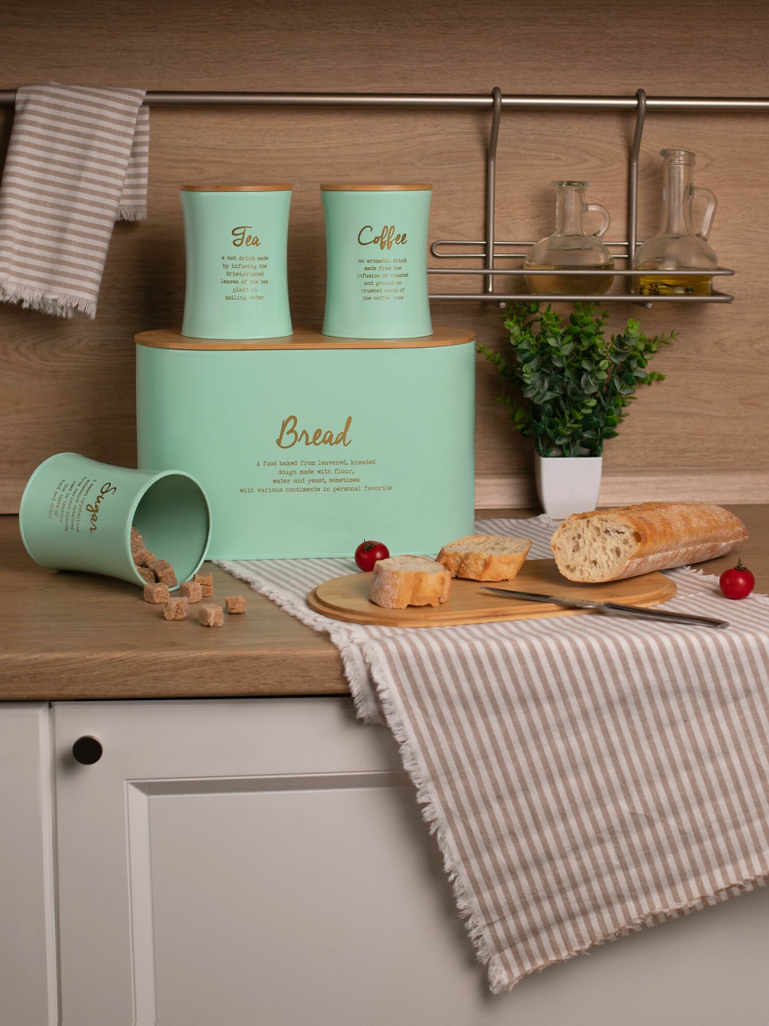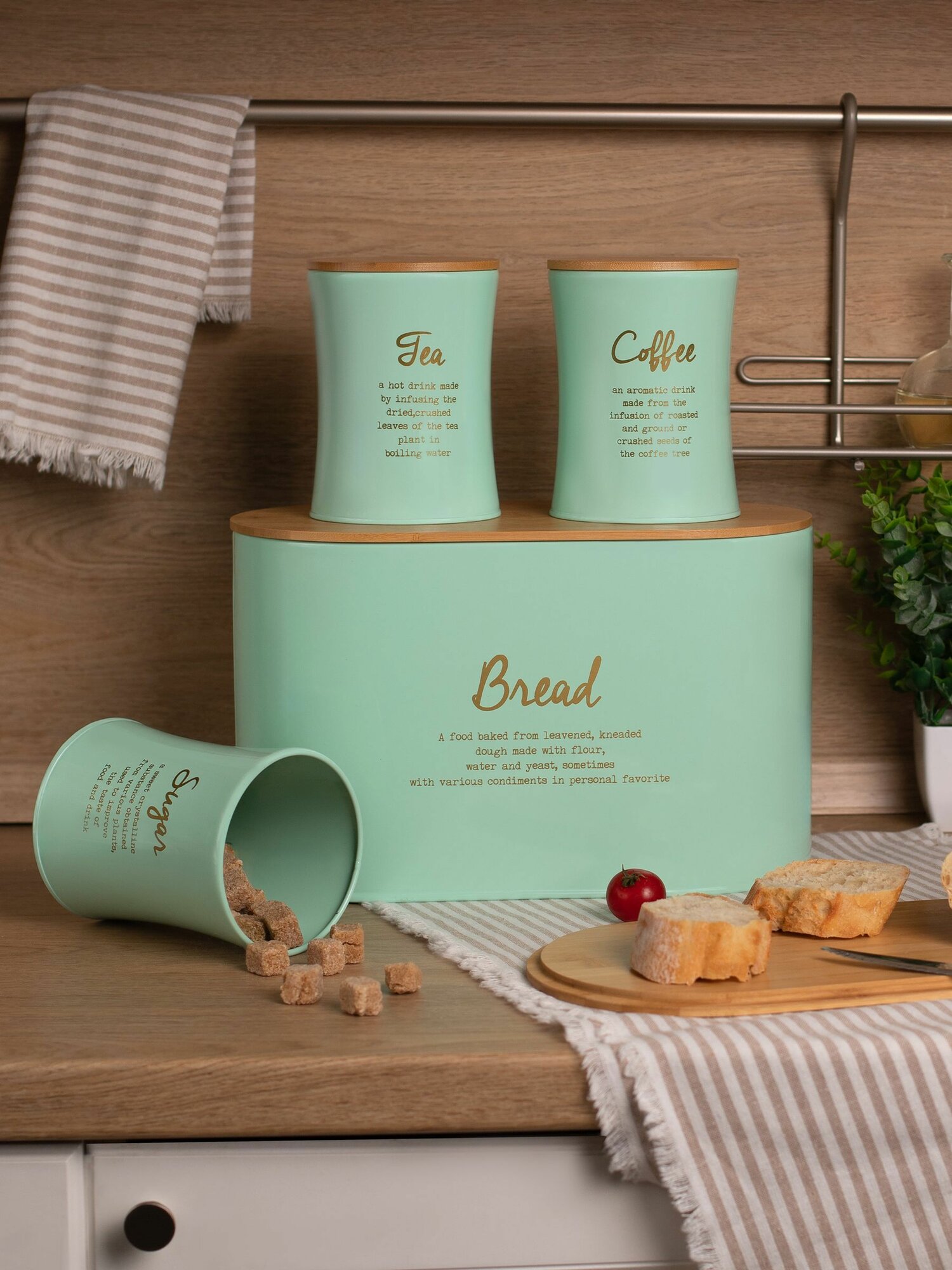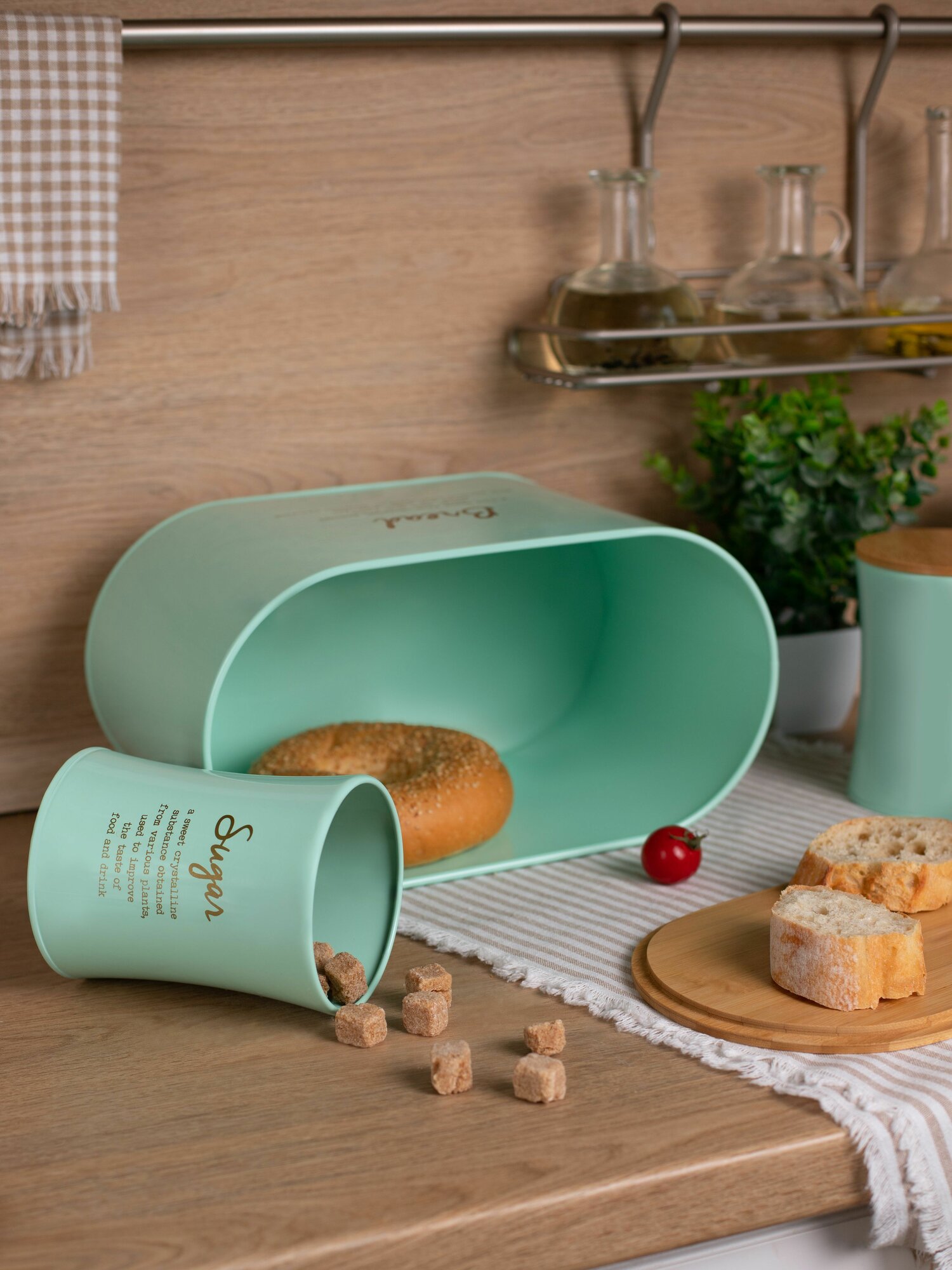 Хлебница Agness "Meadow", набор: 2 в 1 хлебница с крышкой 10 л, банка для сыпучих продуктов 3 штуки информация: