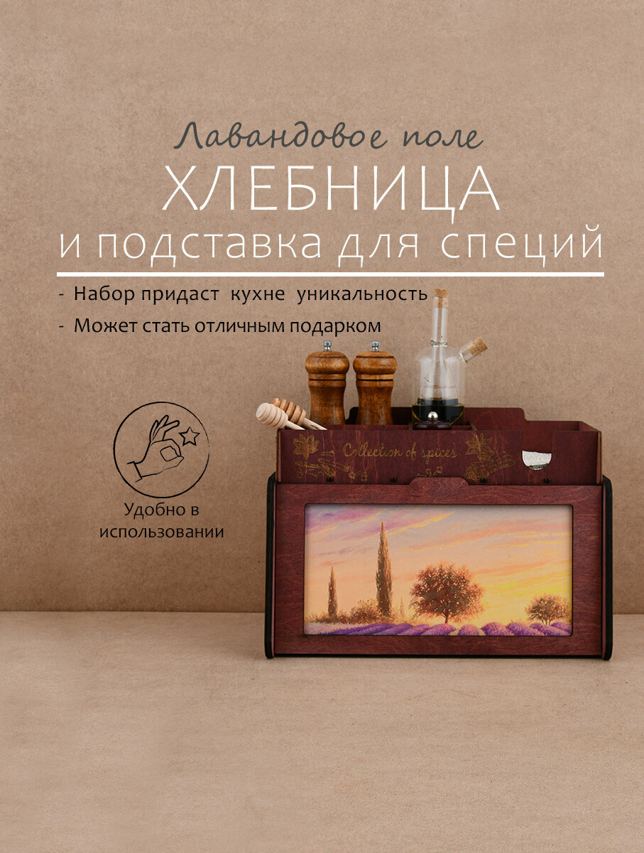 Хлебница деревянная с крышкой и подставка для специй, набор 2 предмета информация: