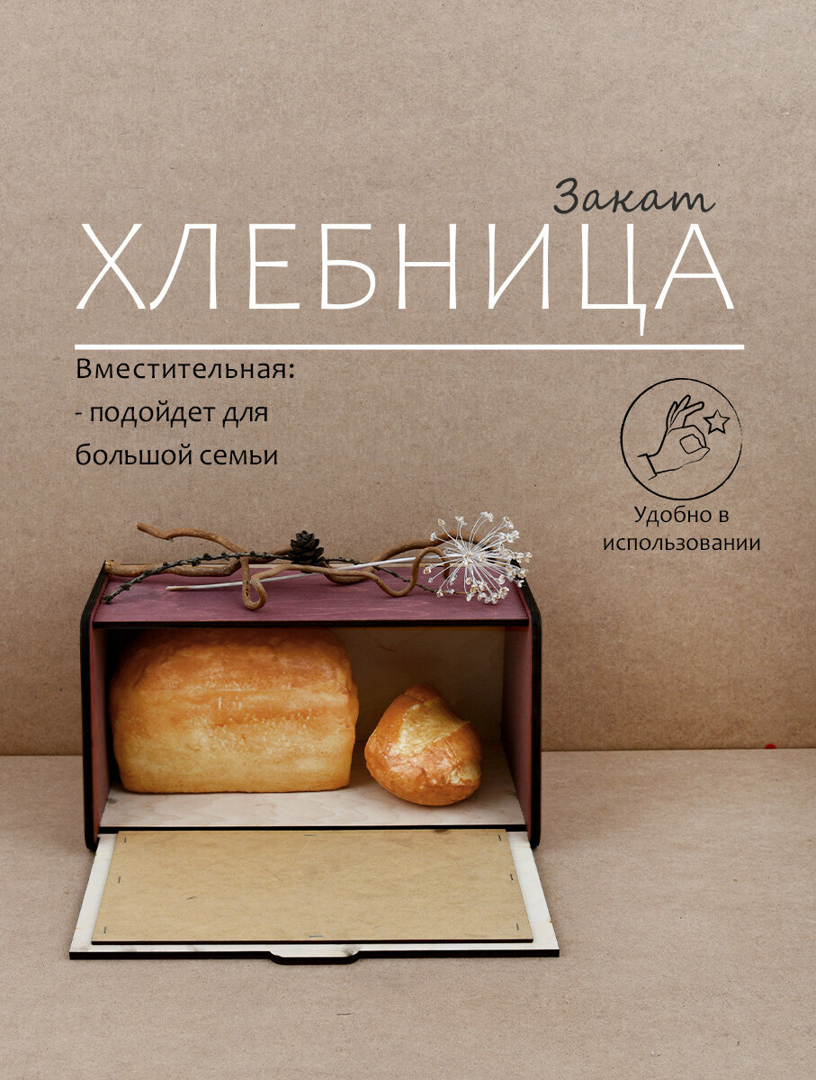Хлебница деревянная с крышкой "Закат", 35,5х20,5х18,5см, толщина 0,6 см. информация: