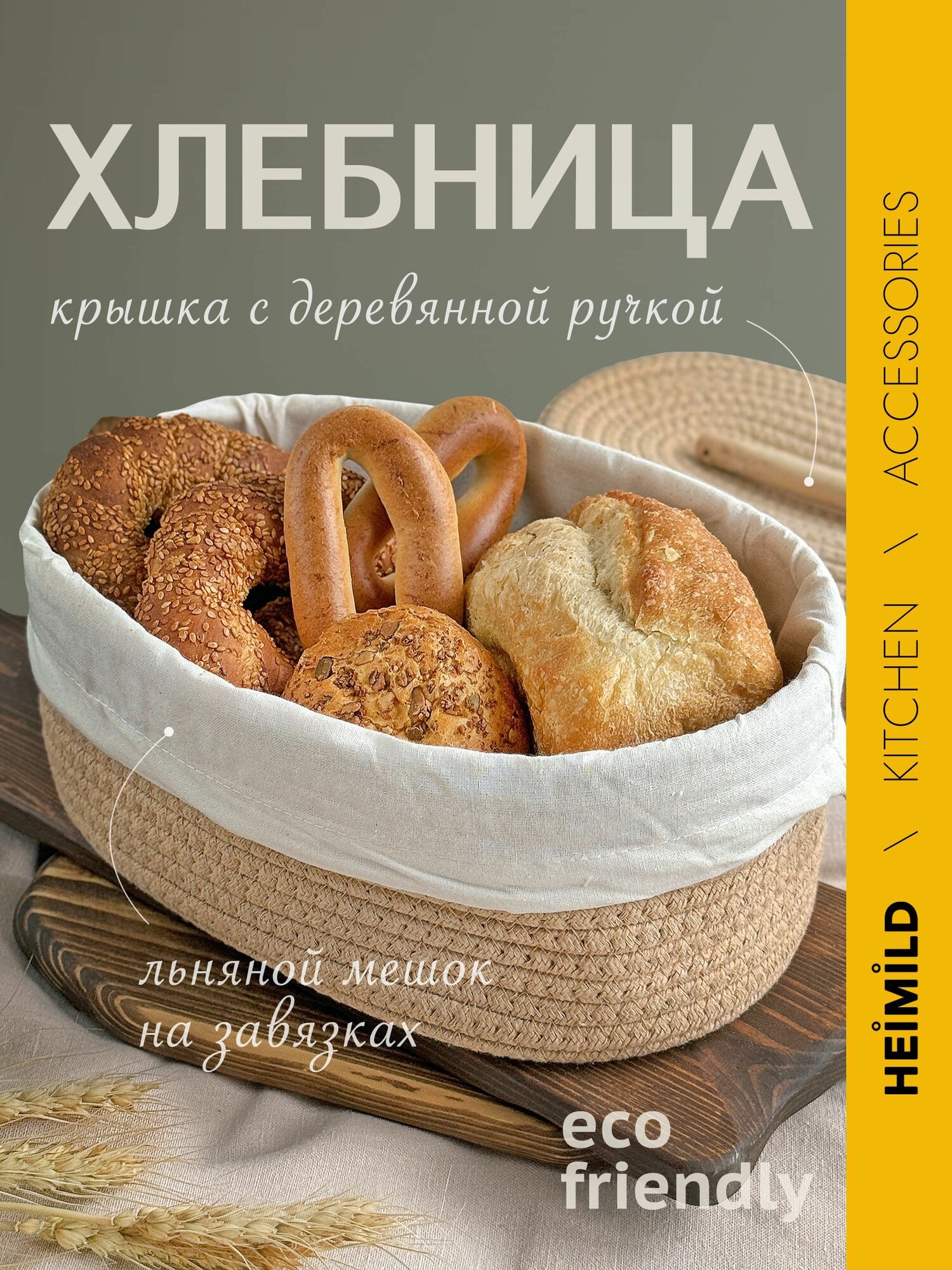 Отзывы на Хлебница HEIMILD, плетеная, с крышкой, бежево-коричневая, 11х28х18см