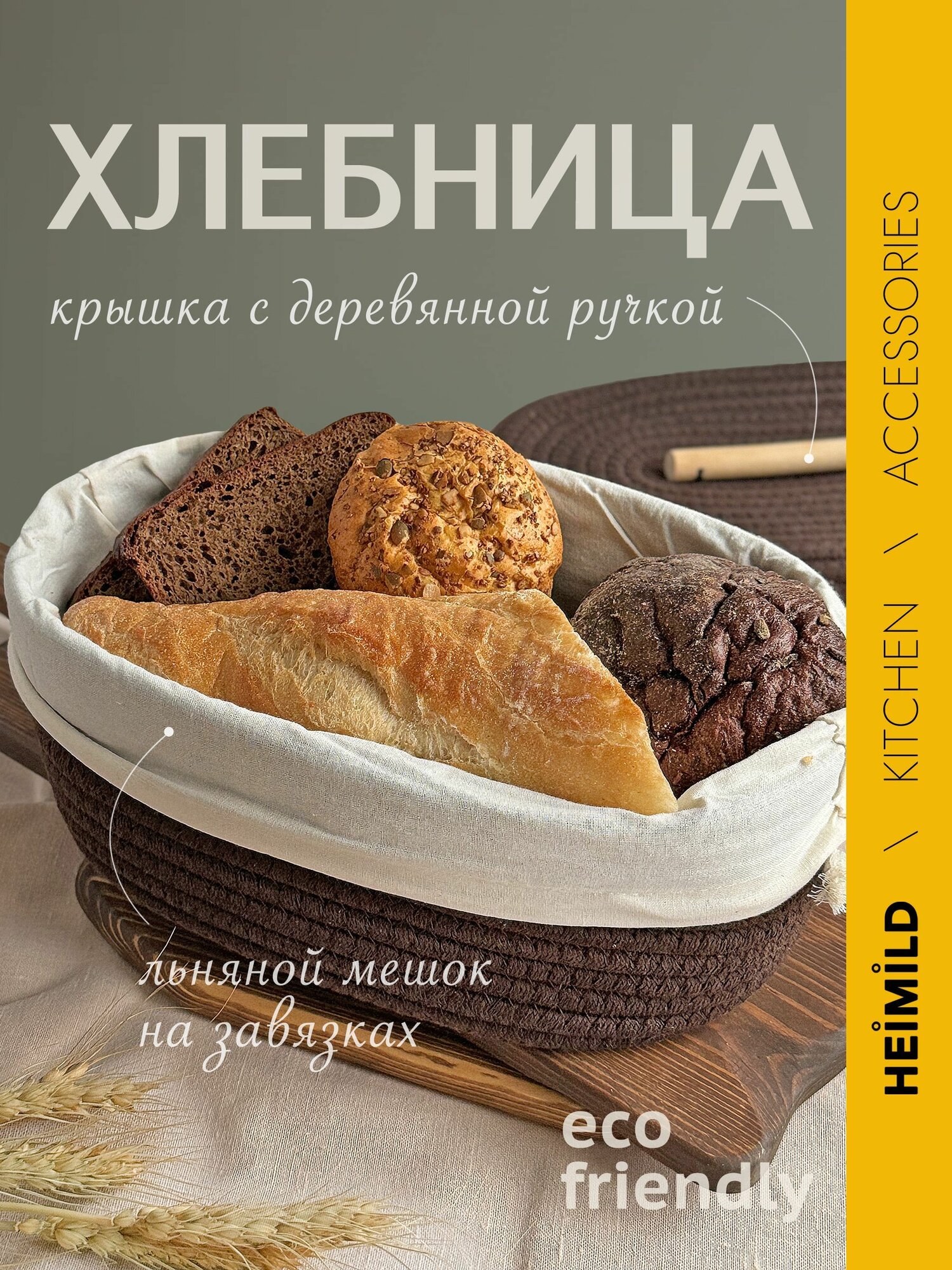Отзывы на Хлебница HEIMILD, корзинка плетеная, с крышкой, коричневая, 11х28х18см
