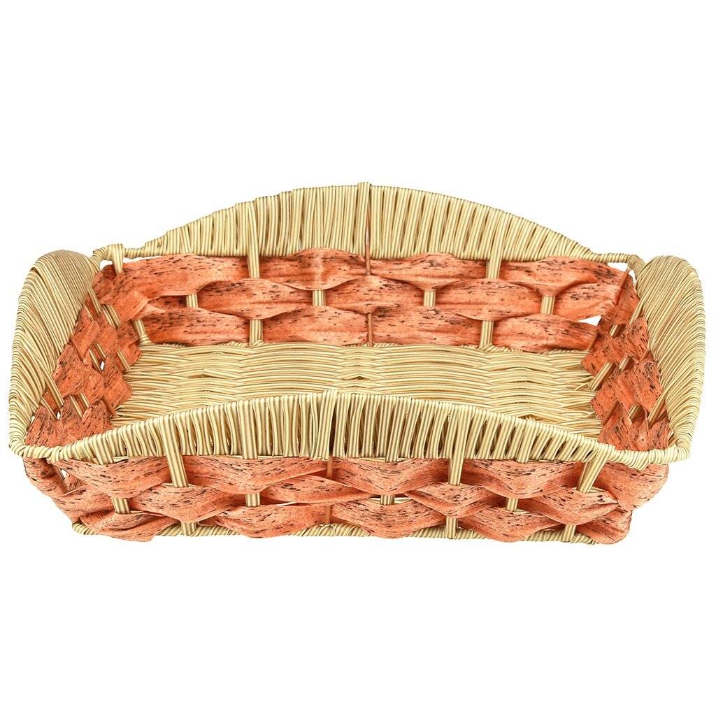 Корзина-сухарница КНР плетеная, 28,5х28,5 см, высота 7,5 см, полипропилен, карамельный, ажурный край, квадратная информация: