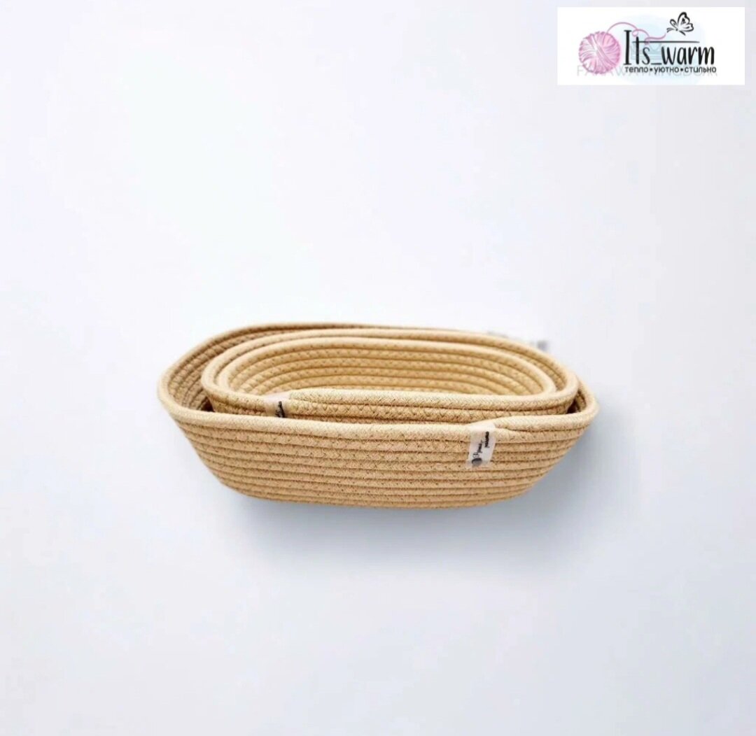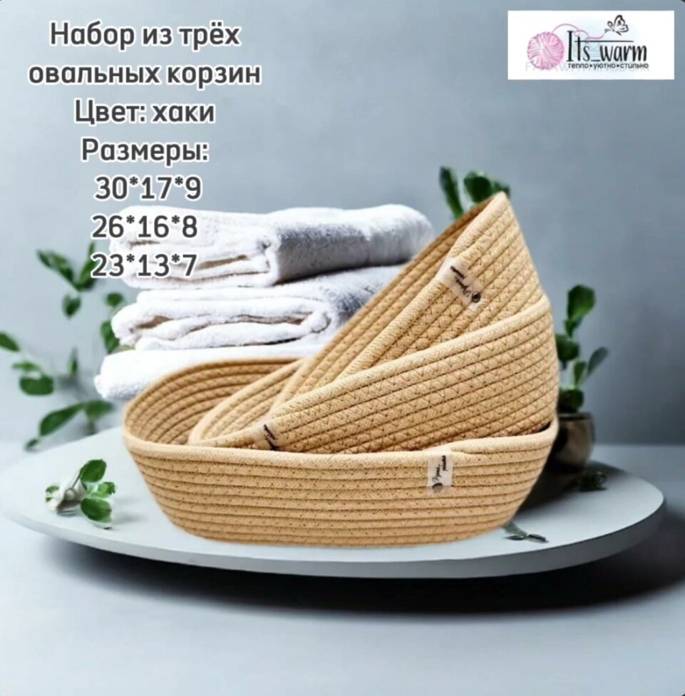 Набор из 3-х овальных плетеных хлопковых корзин/ цвет- хаки информация: