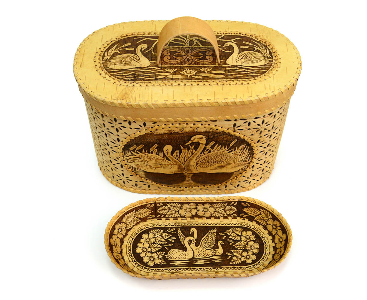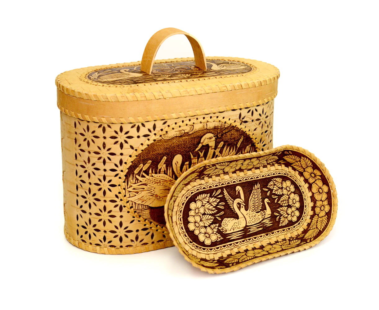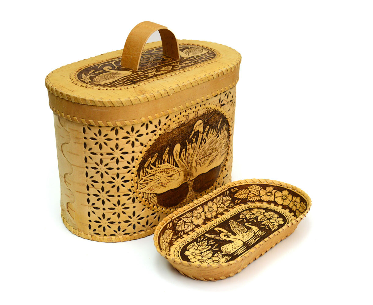 Набор из бересты "Лебеди" хлебница + тарелка информация:
